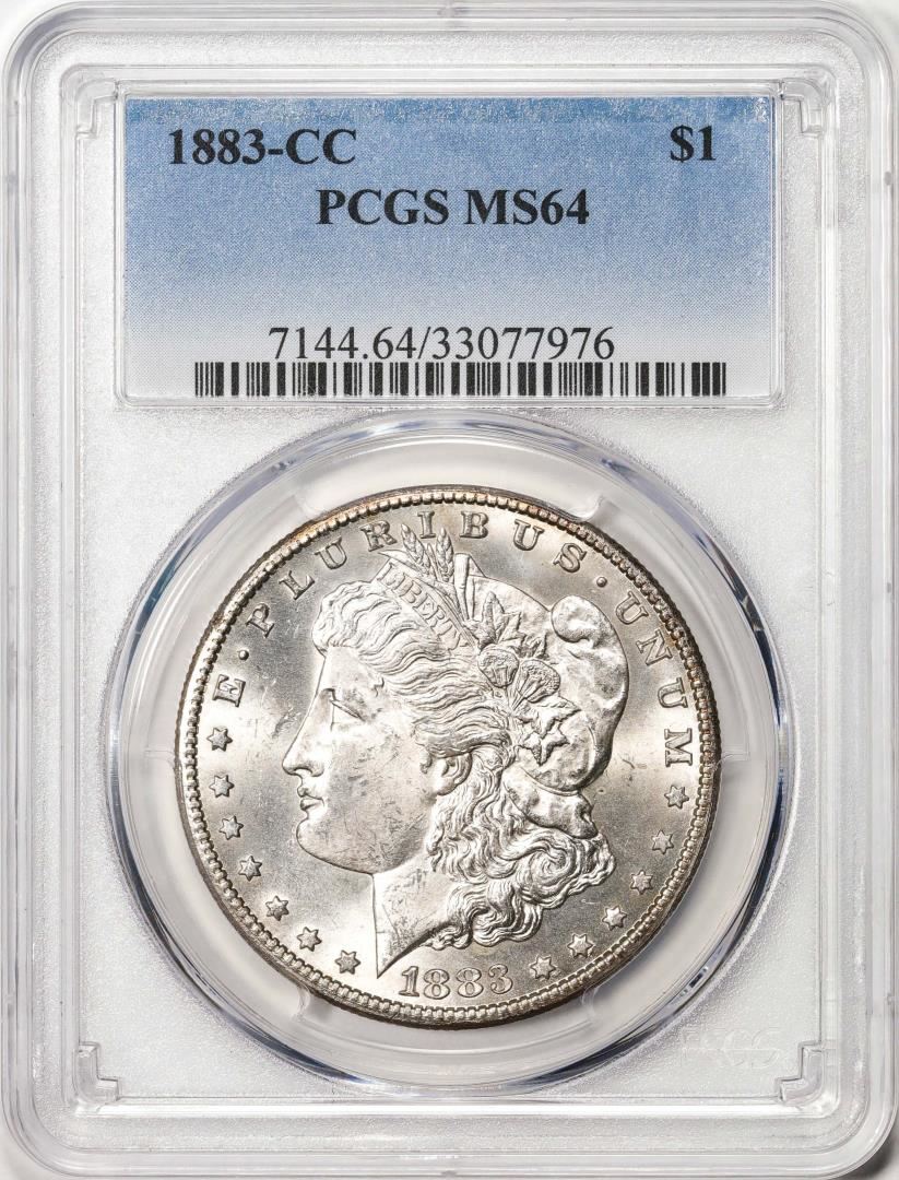 One 1883-CC $1 Morgan Silver Dollar Coin PCGS MS64. PCGS Graded.