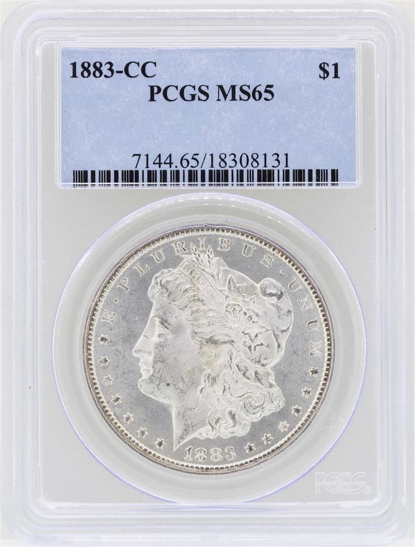 One 1883-CC $1 Morgan Silver Dollar Coin PCGS MS65. PCGS Graded.