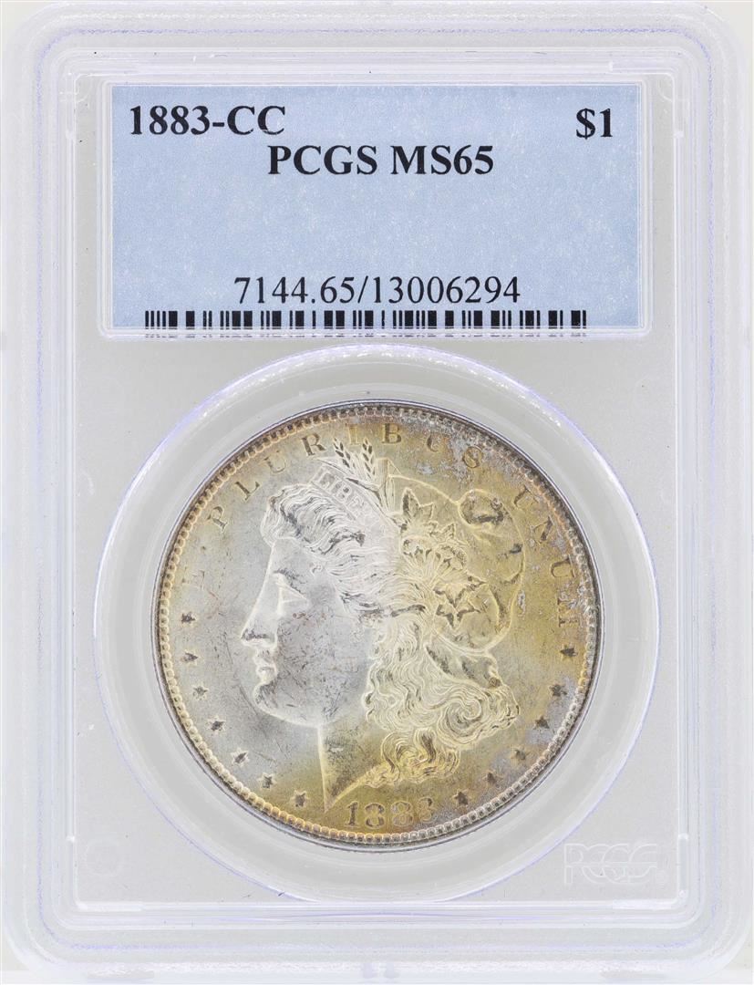 One 1883-CC $1 Morgan Silver Dollar Coin PCGS MS65. PCGS Graded.