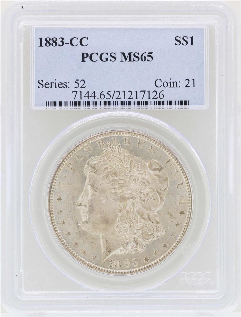 One 1883-CC $1 Morgan Silver Dollar Coin PCGS MS65. PCGS Graded.