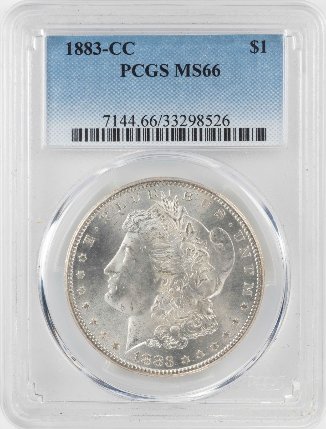One 1883-CC $1 Morgan Silver Dollar Coin PCGS MS66.