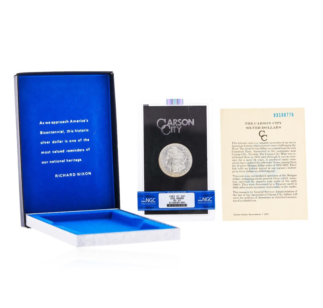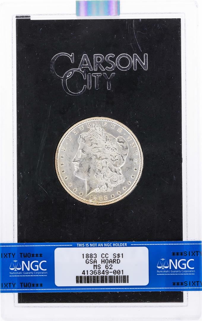 One 1883-CC $1 Morgan Silver Dollar GSA Hoard NGC MS62. NGC Certified.