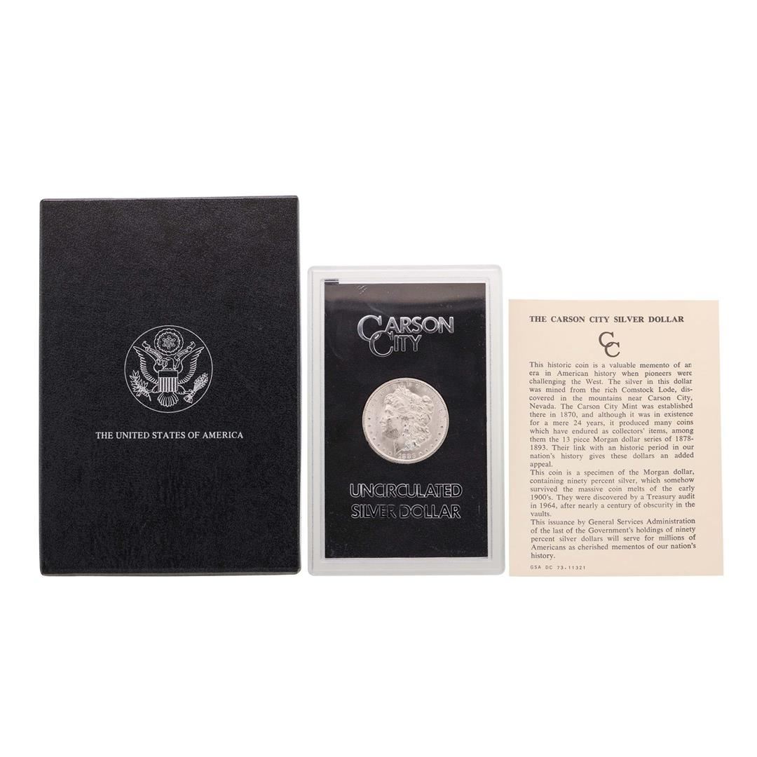 One 1883-CC $1 Morgan Silver Dollar Uncirculated Coin w/ Box GSA & COA.