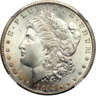 1883-CC $1. NGC graded MS-67. A stunning superb gem! Phenomenal lustrous surfaces that are nearly mark free. An impressive example of a Carson City Morgan. Pop 87; 4 Finer in 67 Star.