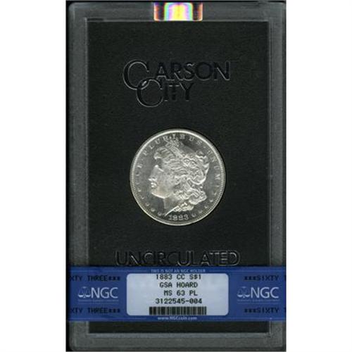 <B>1883-CC $1 MS63 Prooflike NGC.</B></I> GSA Box included. Census: (304/886). PCGS Population (869/1679). Numismedia Wsl. Price for NGC/PCGS coin in MS63: $208. (#7145)<BR><BR><B>Coin Engraver:</B> George T. Morgan<BR><BR><b>Shipping:</b> Coins & Currency (<a target="_blank" href="http://www.heritageauctions.com/common/shipping.php">view shipping information</a>)