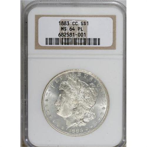 <B>1883-CC $1 MS64 Prooflike NGC.</B></I> NGC Census: (545/335). PCGS Population (1022/650). Numismedia Wsl. Price for NGC/PCGS coin in MS64: $240. (#7145)<BR><BR><B>Coin Engraver:</B> George T. Morgan<BR><BR><b>Shipping:</b> Coins & Currency (<a target="_blank" href="http://www.heritageauctions.com/common/shipping.php">view shipping information</a>)