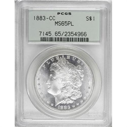 <B>1883-CC $1 MS65 Prooflike PCGS.</B></I> . PCGS Population (536/122). NGC Census: (280/63). Numismedia Wsl. Price for NGC/PCGS coin in MS65: $420. (#7145)<BR><BR><B>Coin Engraver:</B> George T. Morgan<BR><BR><b>Shipping:</b> Coins & Currency (<a target="_blank" href="http://www.heritageauctions.com/common/shipping.php">view shipping information</a>)