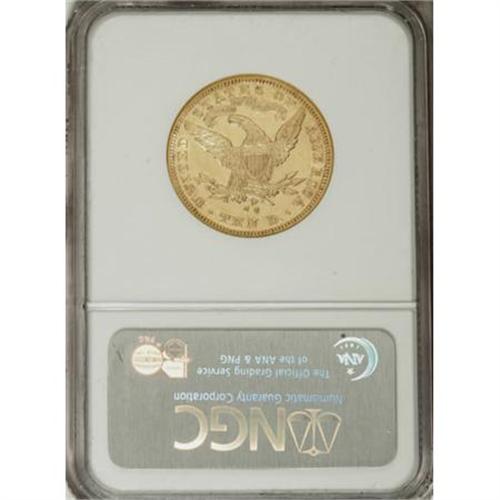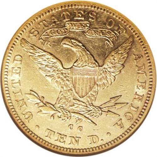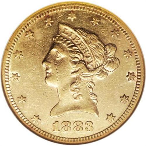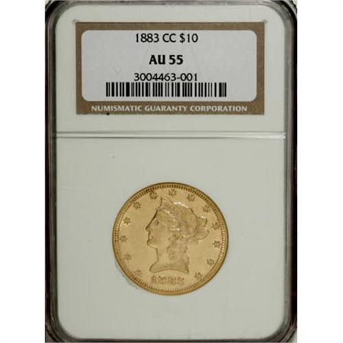 <B>1883-CC $10 AU55 NGC.</B></I> The presses at the Carson City Mint churned out more than 1.2 million silver dollars in 1883. This emission was more than 1,000 times greater than the production of Liberty tens at the facility that year. This partially lustrous example is crisply struck and has surprisingly unblemished fields. Census: 23 in 55, 18 finer (6/07).<BR><BR><B>Coin Engraver:</B> Christian Gobrecht<BR><BR><b>Shipping:</b> Coins & Currency (<a target="_blank" href="http://www.heritageauctions.com/common/shipping.php">view shipping information</a>\)