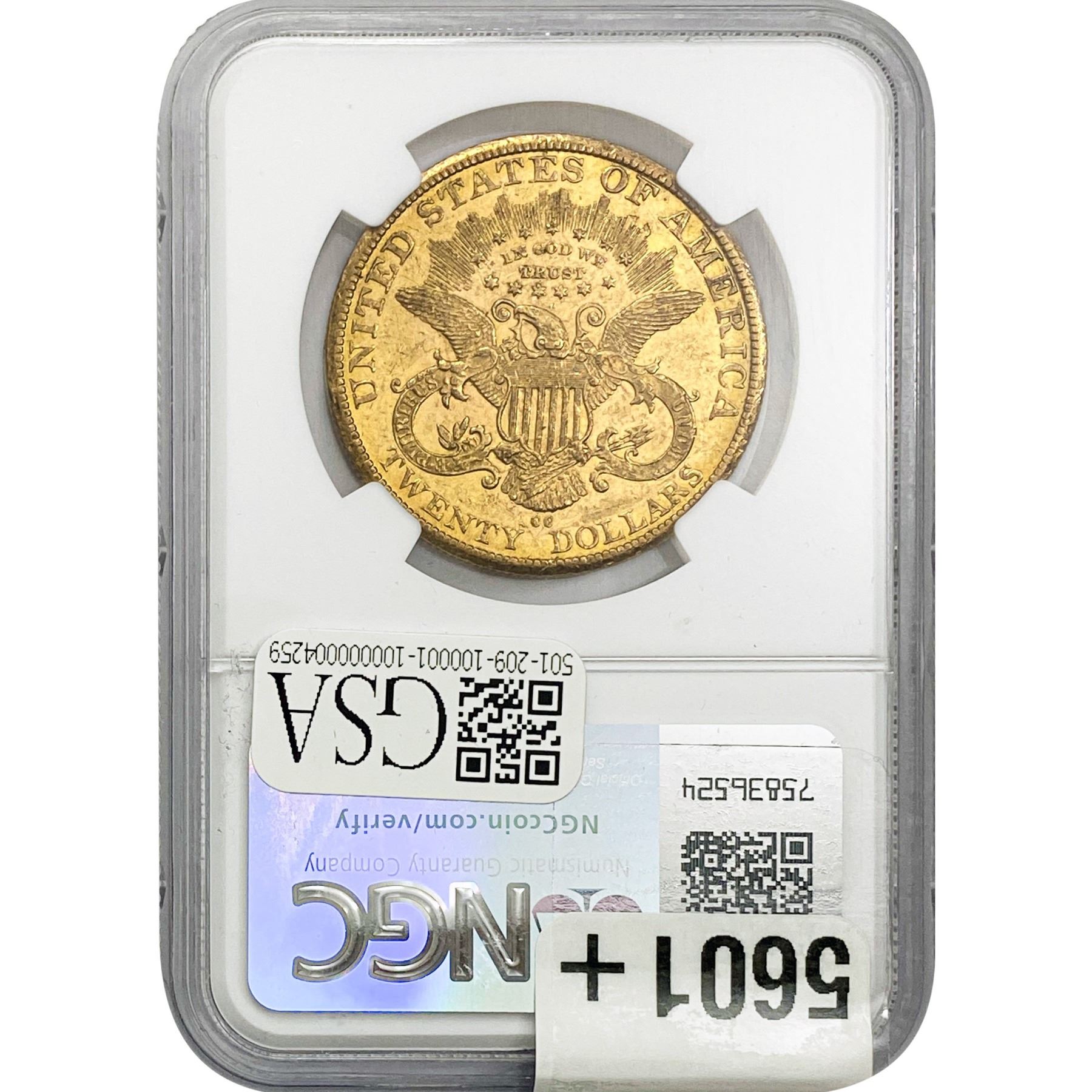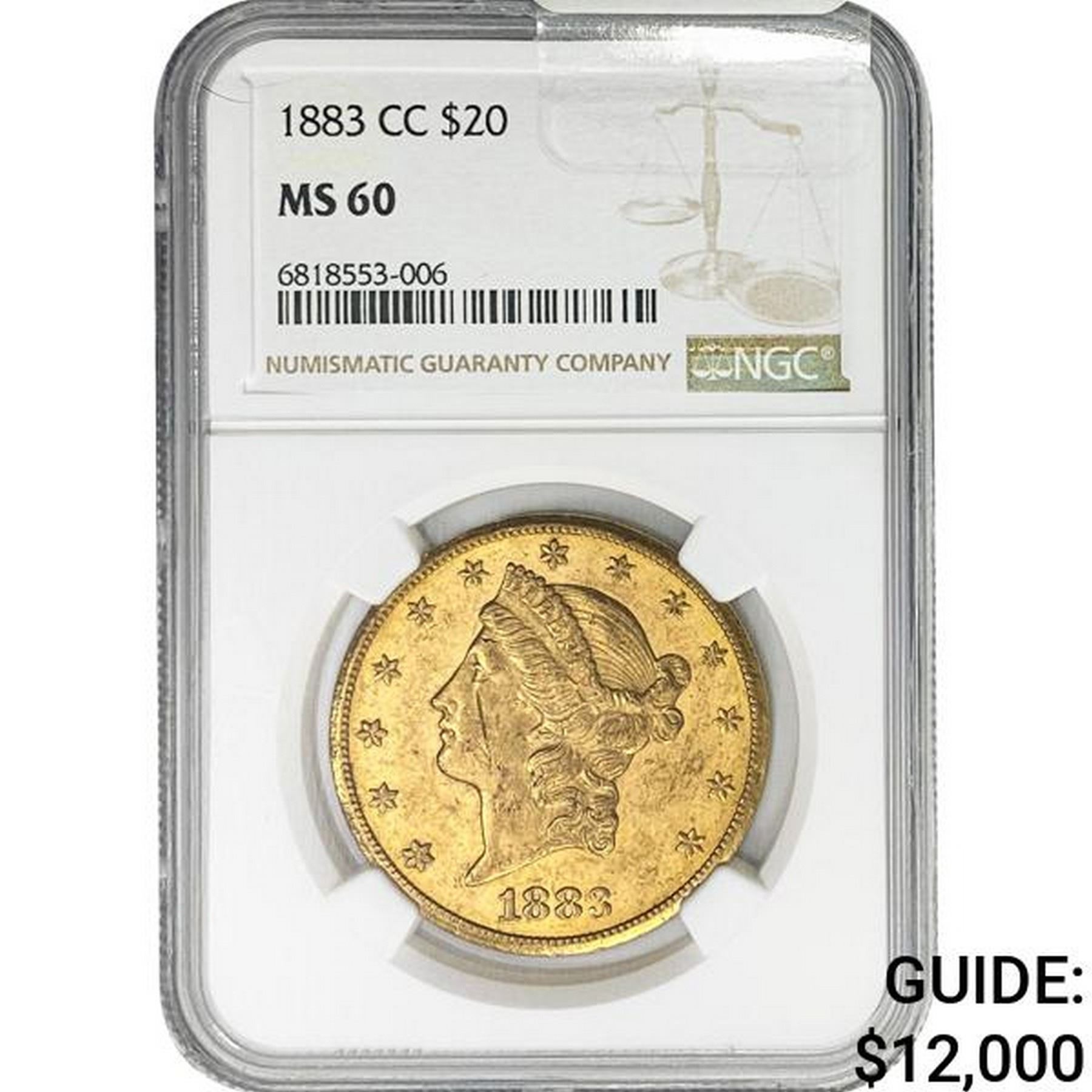 1883-CC $20 Gold Double Eagle NGC MS60