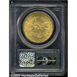 1883-CC $20 MS63 PCGS. While one of the more available Carson City issues in lower grades, all CC Double Eagles are rare and worthwhile coins in strict Mint condition. This is a solid MS63 example, with original surfaces, a modicum of abrasions, and full luster, along with lovely pink and lemon-gold colors. Several small charcoal-colored spots reside near the reverse peripheries, but are only a slight distraction. Although the 1883-CC has a surprisingly high rate of survival (900 to 1,000+ extant) for a frontier era gold coin, with just 59,962 pieces produced, Mint State survivors number just 65-75 examples (per Winter and Halperin, 2001), and none of those examples has been graded higher than MS63, by either of the major services. This offering, therefore, would seem to represent a significant opportunity for the advanced collector of Carson City Mint gold. Population: 2 in 63, 0 finer (10/03). Important notice: Heritage usually auctions material at the rate of 200-250 lots per hour. On some occasions eBay Live bid software or the Internet may not be able to keep up with the pace of the auction. We recommend placing a realistic absentee bid now as insurance to avoid disappointment. Occasionally the auctioneer may eliminate or reject an eBay Live bid, and the auctioneer may also reopen a lot after the close of the eBay live bidding (usually because we missed an audience bid), and may reject your bid even if it shows you as the winning bidder. By bidding via eBay Live, you agree that Heritage may award the lot to another bidder at its sole discretion under the circumstances described above or any other reasonable circumstances. Also please note that all Heritage lots purchased through eBay Live carry a 20% Buyer's Premium. Please make sure you read the Terms and Conditions before you bid.
