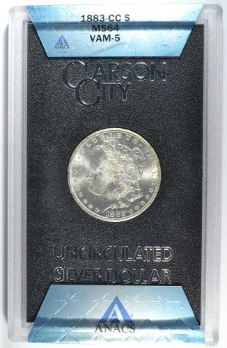 1883-CC GSA MORGAN SILVER DOLLAR, ANACS MS-64 , NO BOX OR CERTIFICATE