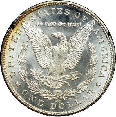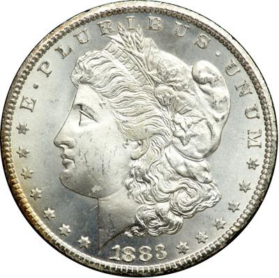 1883-CC. GSA. NGC graded MS-65. A lovely predominantly untoned gem Carson City example. Housed in the large black GSA holder (PCGS # 7144) .