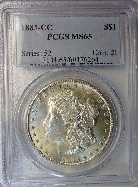 A VERY NICE PCGS GRADED CARSON CITY MORGAN DOLLAR, ESTIMATE $$425.00 TO $460.00