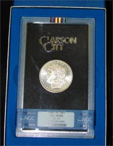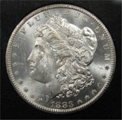 1883-CC MORGAN SILVER DOLLAR. Graded by NGC. MS 63. 2135296-005. In case and box.