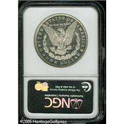 <B>1883-CC<img border='0' src='http://www.heritagecoins.com/images/star.gif' width=10 height=10>$1 MS64 Deep Mirror Prooflike NGC.</B></I> This is a brilliant and attractive example with excellent contrast. The surfaces are fully brilliant with faint traces of toning at the lower obverse. Lot:10121