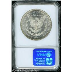 <B>1883-CC<img border='0' src='http://www.heritagecoins.com/images/star.gif' width=10 height=10>$1 MS66 NGC.</B></I> Nearly brilliant, with just a touch or two of tan-milky color in localized areas, and well struck design features. A small mark is concealed in Liberty's hair below the ear, and another is noted on the eagle's breast. Lot:10112