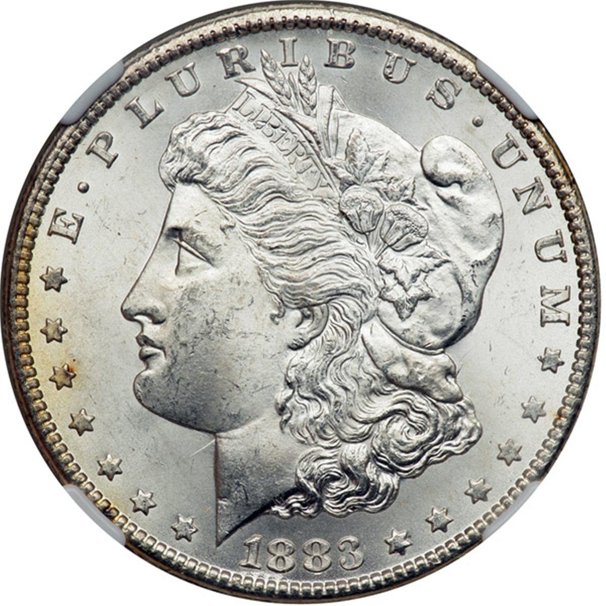1883-CC Morgan Dollar. NGC graded MS-64+. A wonderful fully white specimen (PCGS # 7144) .