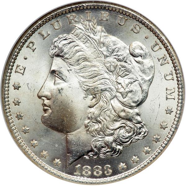 1883-CC Morgan Dollar. NGC graded MS-65. Well struck and totally white (PCGS # 7144) .
