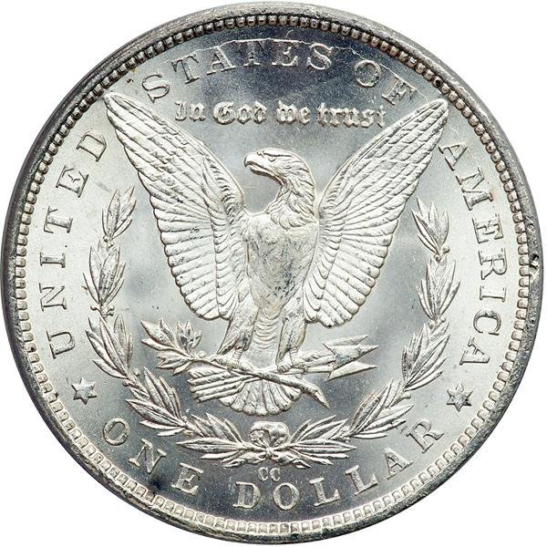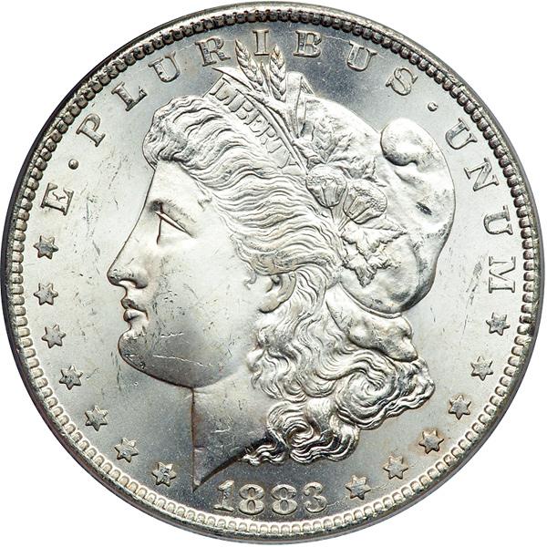 1883-CC Morgan Dollar. PCGS graded MS-65. A white gem, solidly struck by the dies, nearly pristine in its originality (PCGS # 7144) .