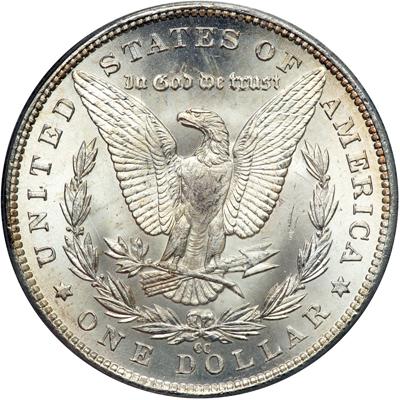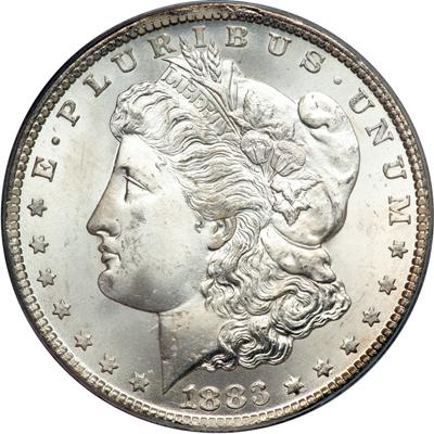 1883-CC Morgan Dollar. PCGS graded MS-66. Frosty white coin. This handsome Gem jumps out of its coin holder forwards, as if it wishes to be first in line to grab your bid! (PCGS # 7144).