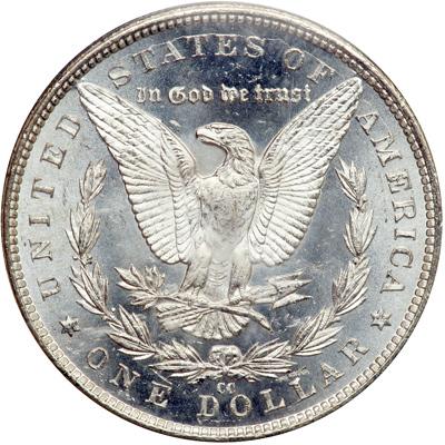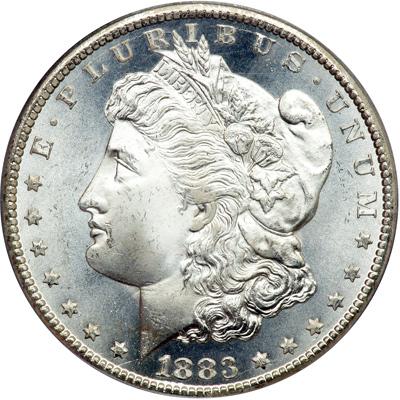 1883-CC Morgan Dollar. PCGS graded MS-66. CAC approved. Untoned. A lovely frosty coin with semi-reflective fields, virtual pristine quality in all areas. Talk about aesthetic appeal! (PCGS # 7144) .