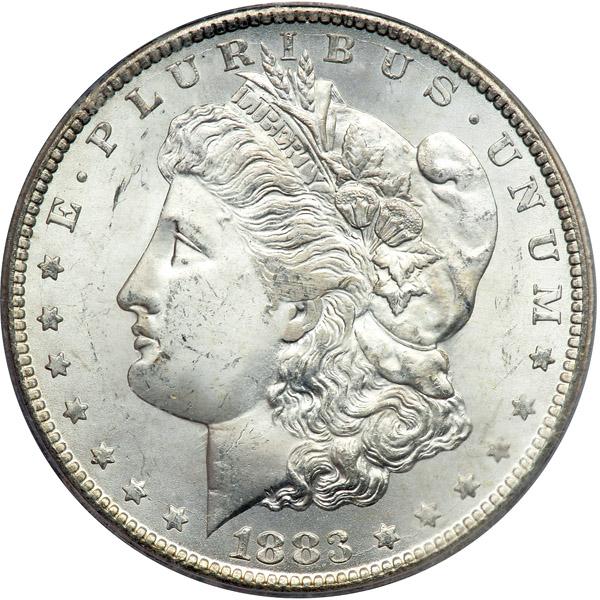 1883-CC Morgan Dollar. ICG graded MS-65. Frosty and white, the Gem quality surfaces gleaming, fresh.