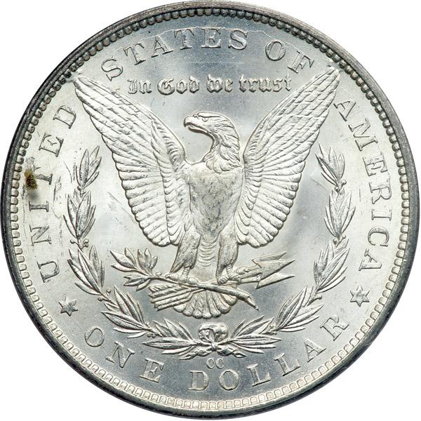 1883-CC Morgan Dollar. PCGS graded MS-64+. Frosty and blast white, nearly a gem and worth inspecting (PCGS # 7144) .