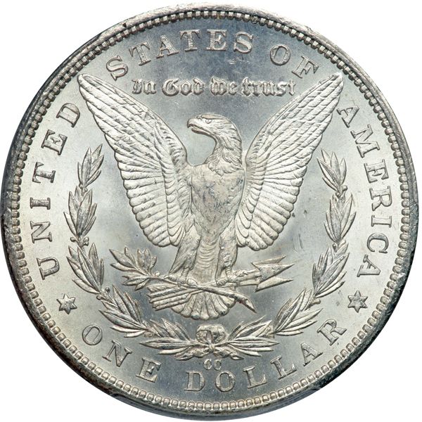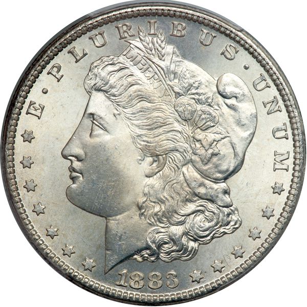 1883-CC Morgan Dollar. PCGS graded MS-66 PQ CAC Approved. A hint of light gold tone on this frosted Gem (PCGS # 7144) .