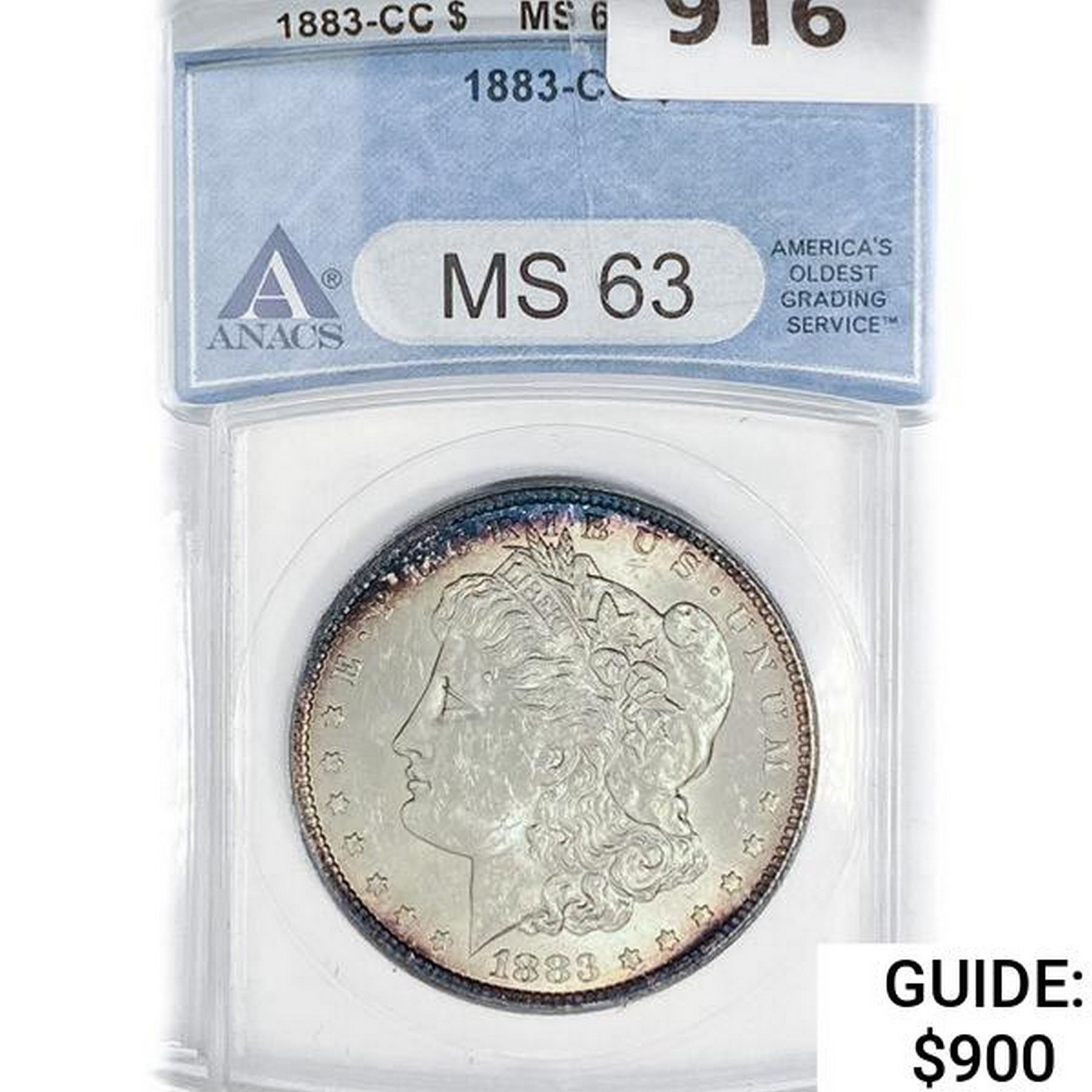 1883-CC Morgan Silver Dollar ANACS MS63