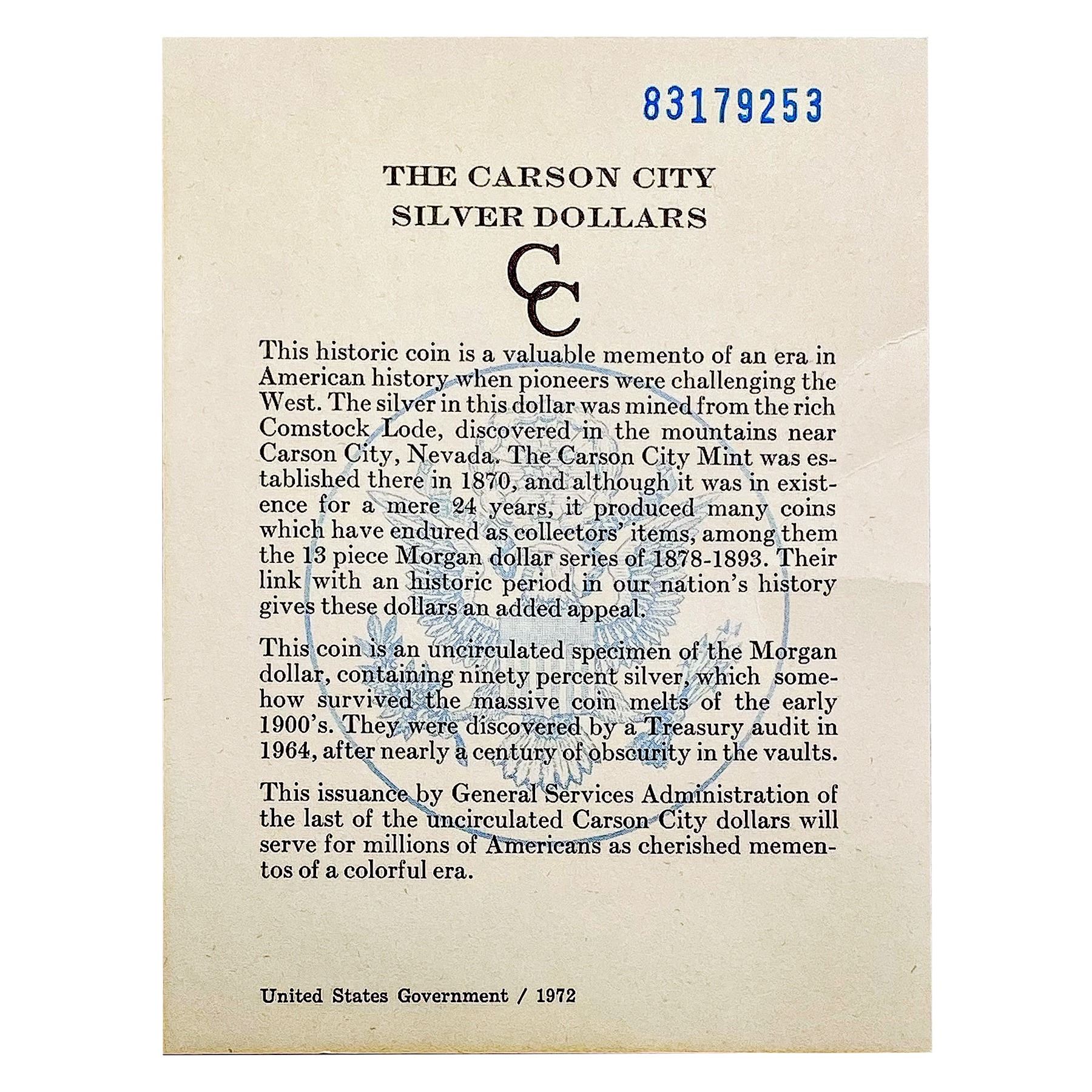 1883-CC Morgan Silver Dollar GSA Hoard, UNC