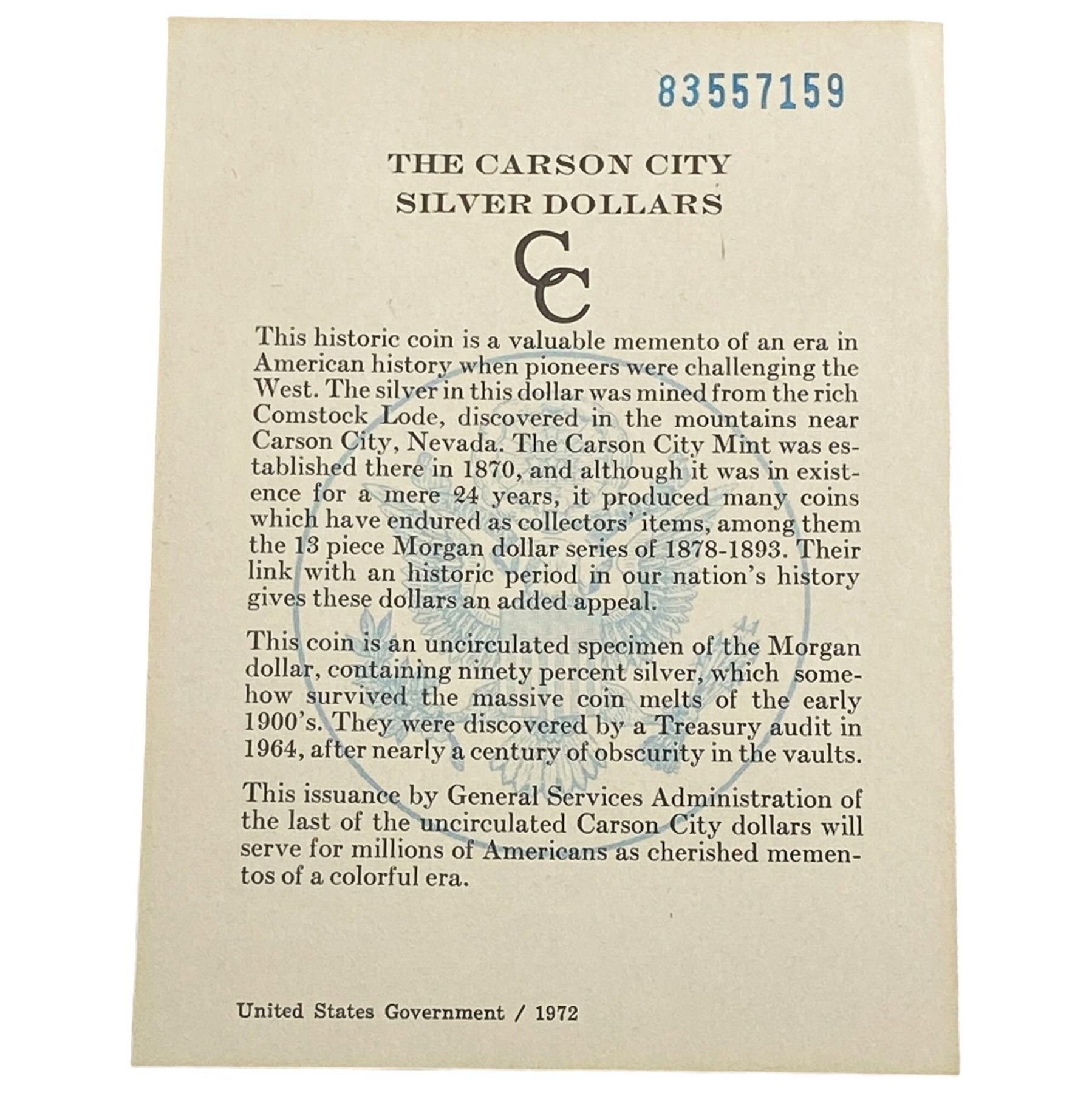 1883-CC Morgan Silver Dollar GSA UNCIRCULATED