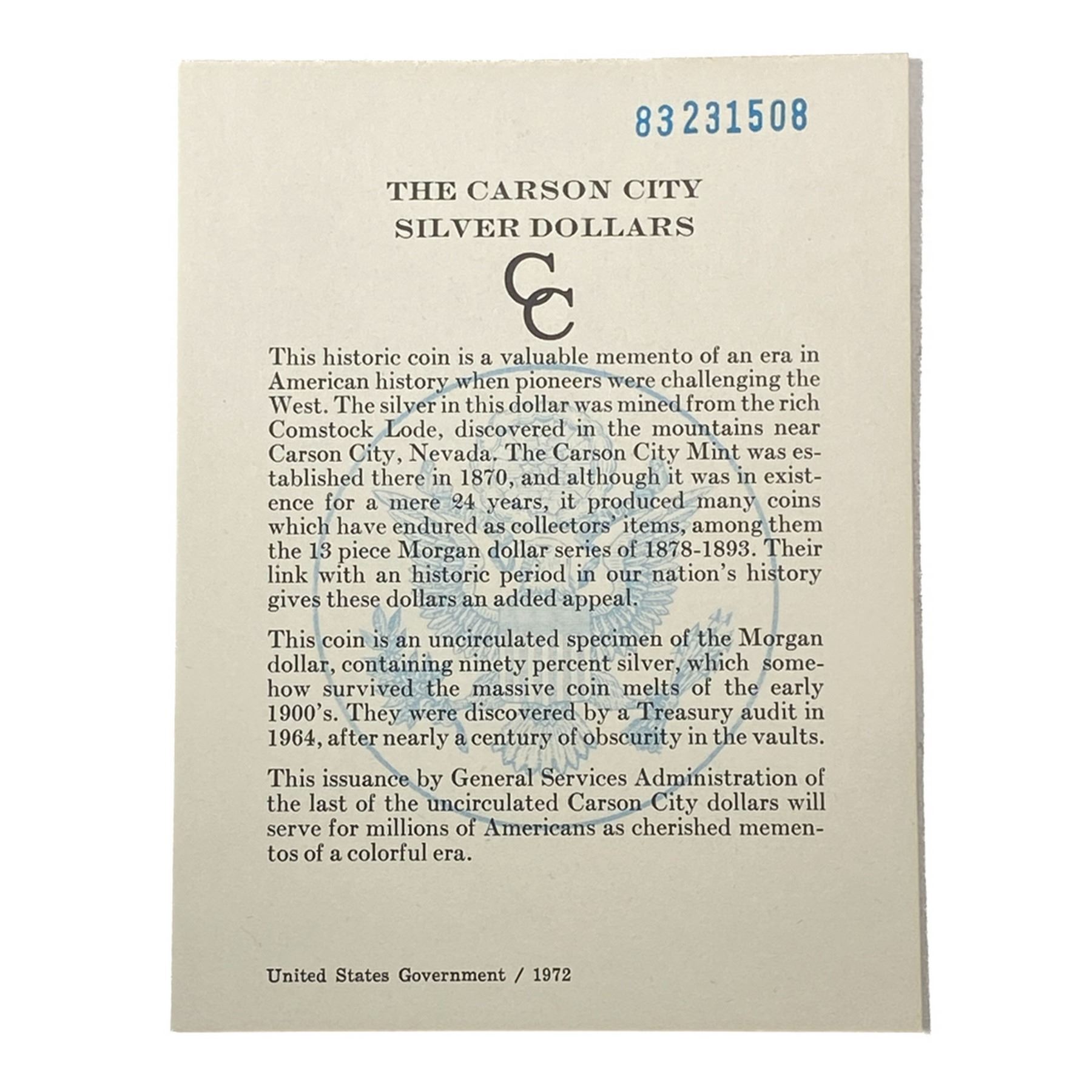 1883-CC Morgan Silver Dollar GSA UNC