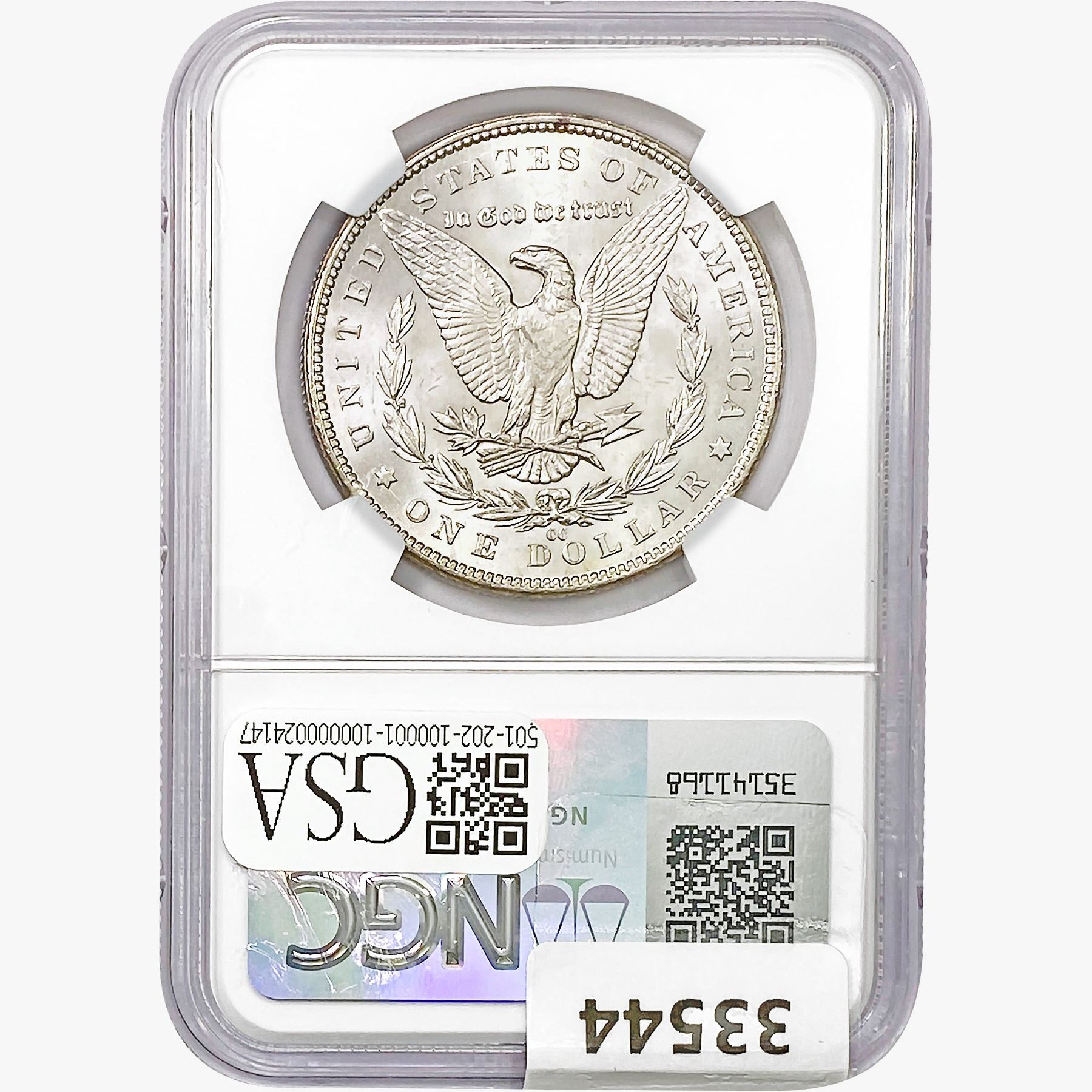 COINS AND CURRENCY LISTED IN GSA’S CATALOG AS GRADED AND ENCAPSULATED BY PCGS, NGC, ANACS, ICG, PCGS CURRENCY, PMG, PCGS BANKNOTE GRADING, CMC OR ANY OTHER THIRD-PARTY GRADING SERVICE ARE LIKEWISE SOLD “AS-IS” EXCEPT AS EXPRESSLY SET FORTH HEREIN. ALL THIRD-PARTY GRADING SERVICE GUARANTEES, INCLUDING AUTHENTICITY, ARE THE SOLE RESPONSIBILITY OF THE THIRD-PARTY GRADING SERVICE AND NOT WARRANTIES OR GUARANTEES OF GSA. BIDDERS SHOULD CONTACT THESE THIRD-PARTY GRADING SERVICES DIRECTLY WITH RESPECT TO ANY CLAIMS OR QUESTIONS THEY MAY HAVE CONCERNING THEIR GUARANTEES AND WARRANTIES. BIDDERS ACKNOWLEDGE AND AGREE THAT AUCTIONEER IS NOT BOUND BY OR LIABLE FOR ANY OPINION OR CERTIFICATION BY ANY THIRD-PARTY GRADING SERVICE. REMOVAL OF A PRODUCT FROM ITS PROTECTIVE CASING OR HOLDER OR ALTERATION OF ANY COIN HOLDER WAIVES ALL RIGHTS CONCERNING THE PRODUCT CONTAINED THEREIN.