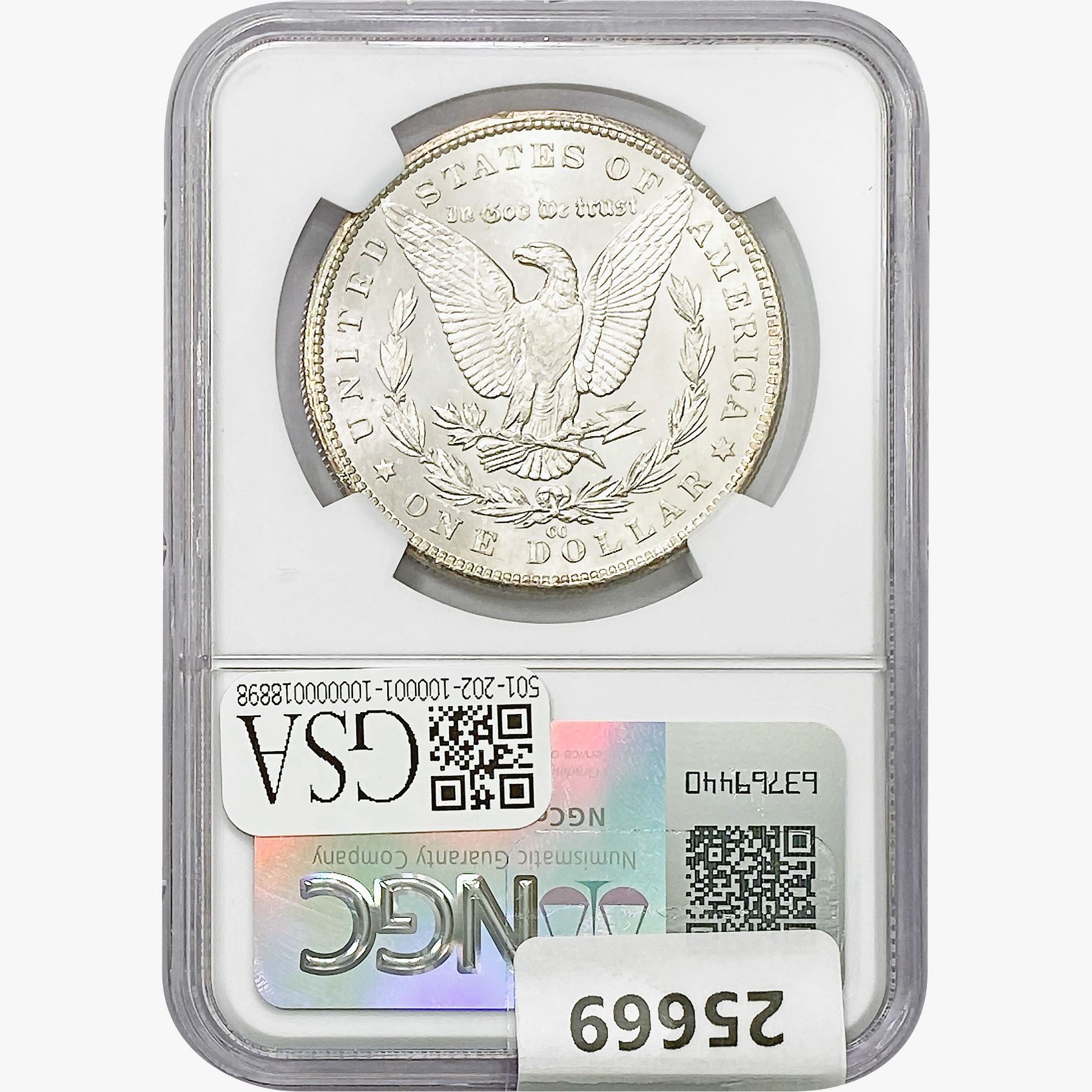 e. Coins sold referencing a third-party grading service are sold "AS IS" without any express or implied warranty, except for a guarantee by GSA that they are genuine. Removal or alteration of the holder, voids all of Bidder's claims concerning that Product. Certain warranties may be available from the grading services and Bidders are referred to them for further details: Numismatic Guaranty Corporation (NGC), PO Box 4776, Sarasota, FL 34230, www.ngccoin.com/services/writtenguarantee.asp; Professional Coin Grading Services (PCGS), PO Box 9458, Newport Beach, CA 92658, www.pcgs.com/guarantee.html; ANACS, 6555 S. Kenton St., Ste. 303, Englewood, CO 80111; and Independent Coin Grading Co. (ICG), 7901 East Bellview, Ave., Suite 50, Englewood, CO 80111.