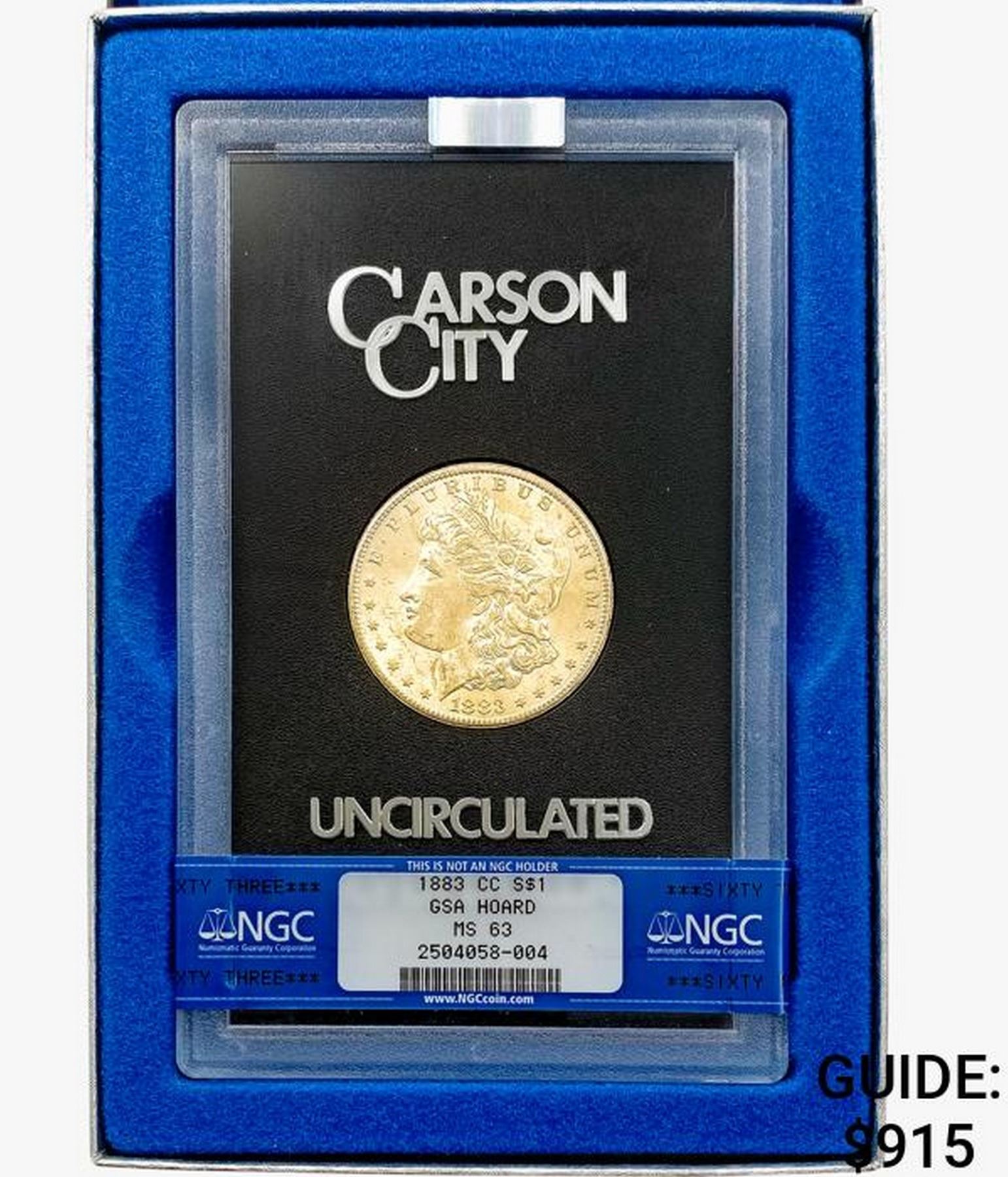 COINS AND CURRENCY LISTED IN GSA’S CATALOG AS GRADED AND ENCAPSULATED BY PCGS, NGC, ANACS, ICG, PCGS CURRENCY, PMG, PCGS BANKNOTE GRADING, CMC OR ANY OTHER THIRD-PARTY GRADING SERVICE ARE LIKEWISE SOLD “AS-IS” EXCEPT AS EXPRESSLY SET FORTH HEREIN. ALL THIRD-PARTY GRADING SERVICE GUARANTEES, INCLUDING AUTHENTICITY, ARE THE SOLE RESPONSIBILITY OF THE THIRD-PARTY GRADING SERVICE AND NOT WARRANTIES OR GUARANTEES OF GSA. BIDDERS SHOULD CONTACT THESE THIRD-PARTY GRADING SERVICES DIRECTLY WITH RESPECT TO ANY CLAIMS OR QUESTIONS THEY MAY HAVE CONCERNING THEIR GUARANTEES AND WARRANTIES. BIDDERS ACKNOWLEDGE AND AGREE THAT AUCTIONEER IS NOT BOUND BY OR LIABLE FOR ANY OPINION OR CERTIFICATION BY ANY THIRD-PARTY GRADING SERVICE. REMOVAL OF A PRODUCT FROM ITS PROTECTIVE CASING OR HOLDER OR ALTERATION OF ANY COIN HOLDER WAIVES ALL RIGHTS CONCERNING THE PRODUCT CONTAINED THEREIN.