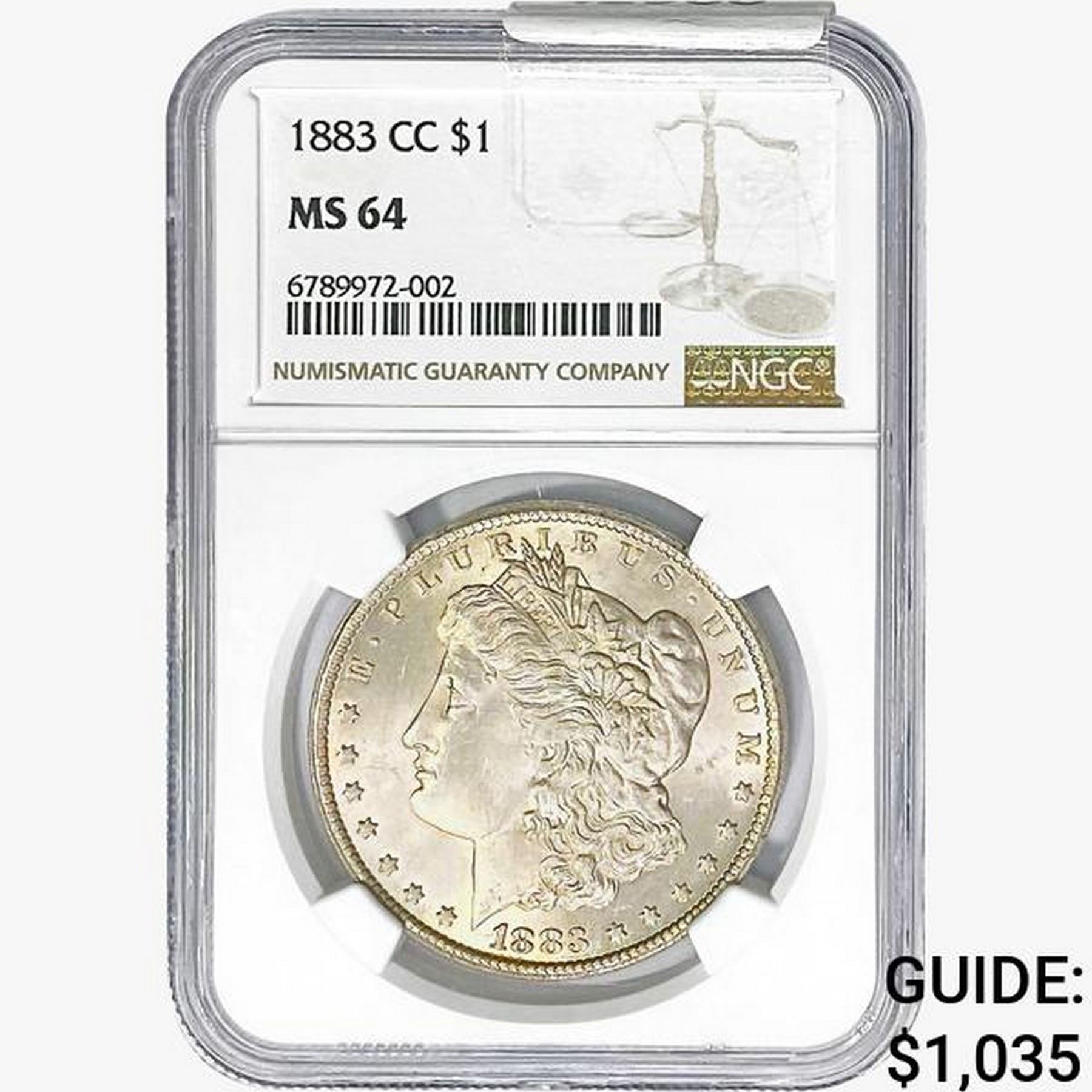 1883-CC Morgan Silver Dollar NGC MS64