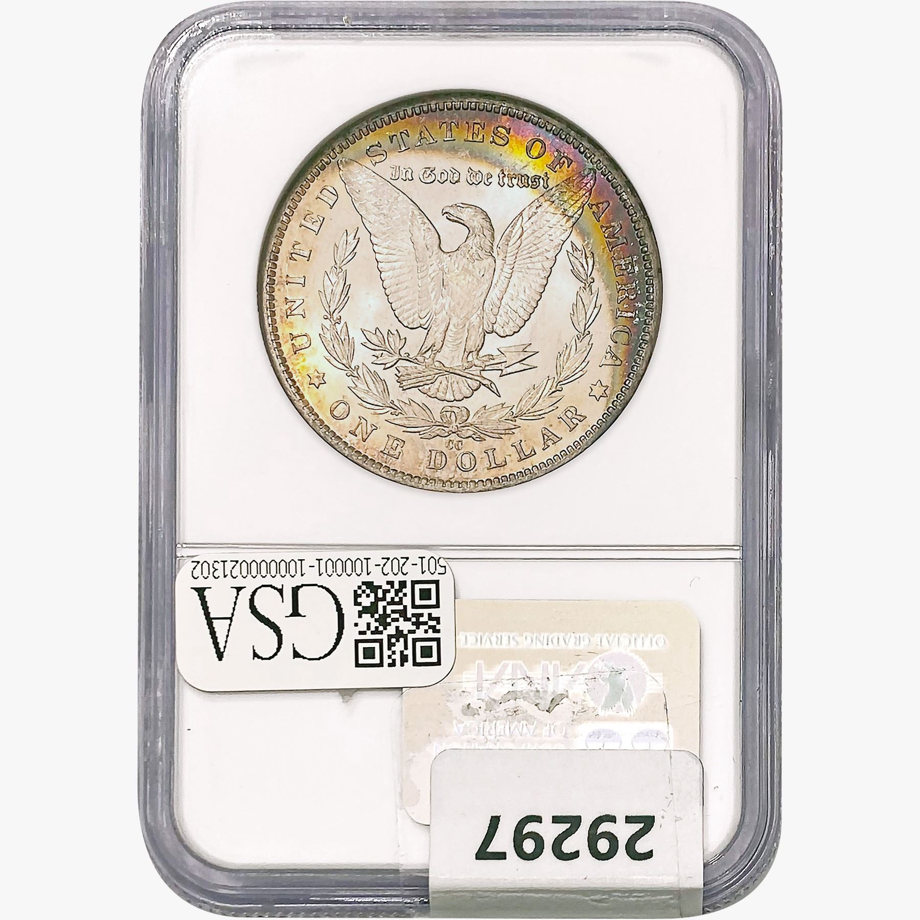 l. All non-certified coins and currency are guaranteed genuine, but are not guaranteed as to grade, since grading is a matter of opinion, an art and not a science, and therefore the description rendered by GSA or any third-party grading service may not agree with the opinion of others (including trained experts), and the same expert may not grade the same item with the same grade at two different times. GSA may, but is not obligated to, express an opinion as to non-certified numismatic items, in GSA’s opinion, or by its employees’ experience and the current interpretation of the American Numismatic Association’s standards as of the date the catalog was prepared. There is no guarantee or warranty expressed or implied that the grading opinions utilized by GSA, if any, will meet the standards of any grading service at any time in the future.