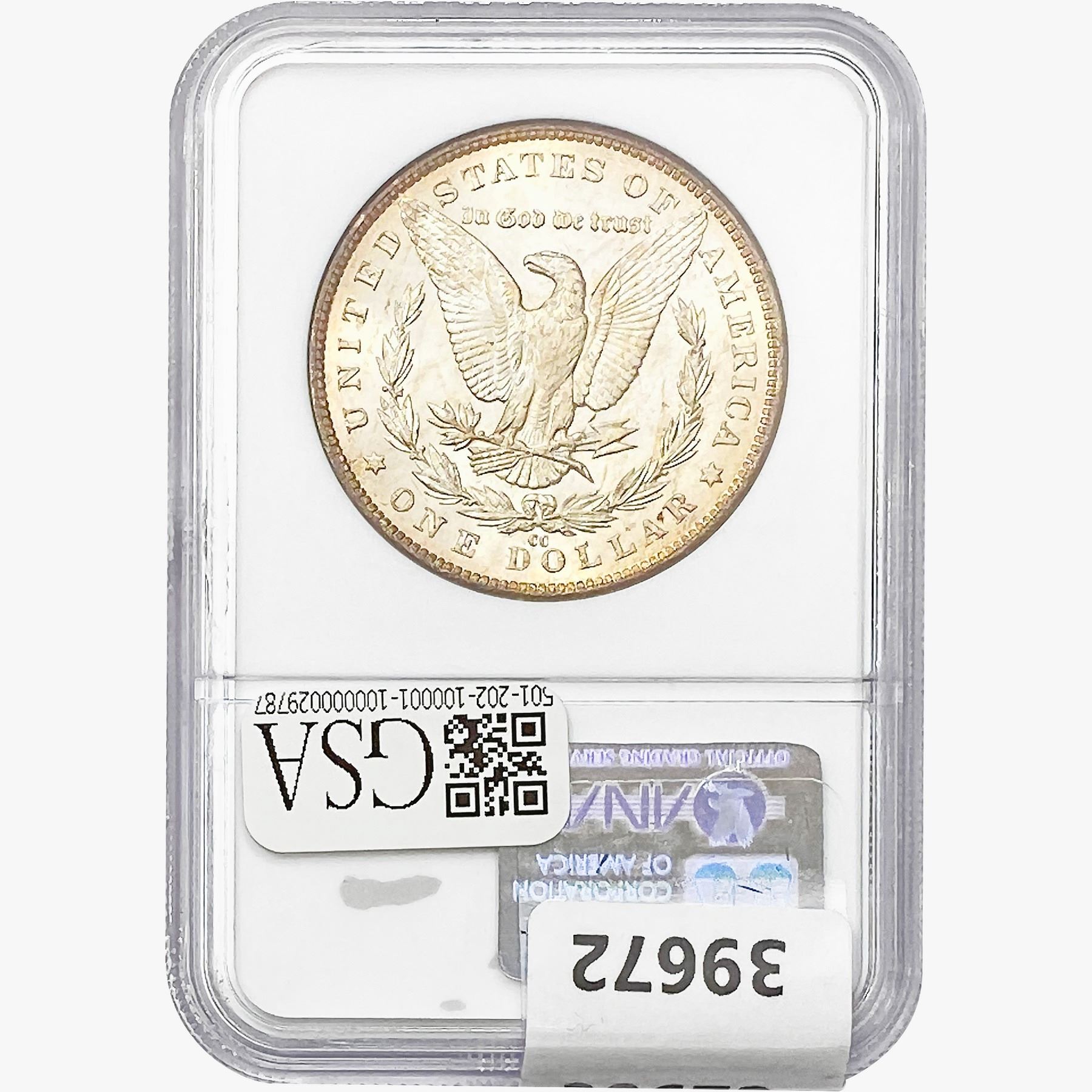 COINS AND CURRENCY LISTED IN GSA’S CATALOG AS GRADED AND ENCAPSULATED BY PCGS, NGC, ANACS, ICG, PCGS CURRENCY, PMG, PCGS BANKNOTE GRADING, CMC OR ANY OTHER THIRD-PARTY GRADING SERVICE ARE LIKEWISE SOLD “AS-IS” EXCEPT AS EXPRESSLY SET FORTH HEREIN. ALL THIRD-PARTY GRADING SERVICE GUARANTEES, INCLUDING AUTHENTICITY, ARE THE SOLE RESPONSIBILITY OF THE THIRD-PARTY GRADING SERVICE AND NOT WARRANTIES OR GUARANTEES OF GSA. BIDDERS SHOULD CONTACT THESE THIRD-PARTY GRADING SERVICES DIRECTLY WITH RESPECT TO ANY CLAIMS OR QUESTIONS THEY MAY HAVE CONCERNING THEIR GUARANTEES AND WARRANTIES. BIDDERS ACKNOWLEDGE AND AGREE THAT AUCTIONEER IS NOT BOUND BY OR LIABLE FOR ANY OPINION OR CERTIFICATION BY ANY THIRD-PARTY GRADING SERVICE. REMOVAL OF A PRODUCT FROM ITS PROTECTIVE CASING OR HOLDER OR ALTERATION OF ANY COIN HOLDER WAIVES ALL RIGHTS CONCERNING THE PRODUCT CONTAINED THEREIN.