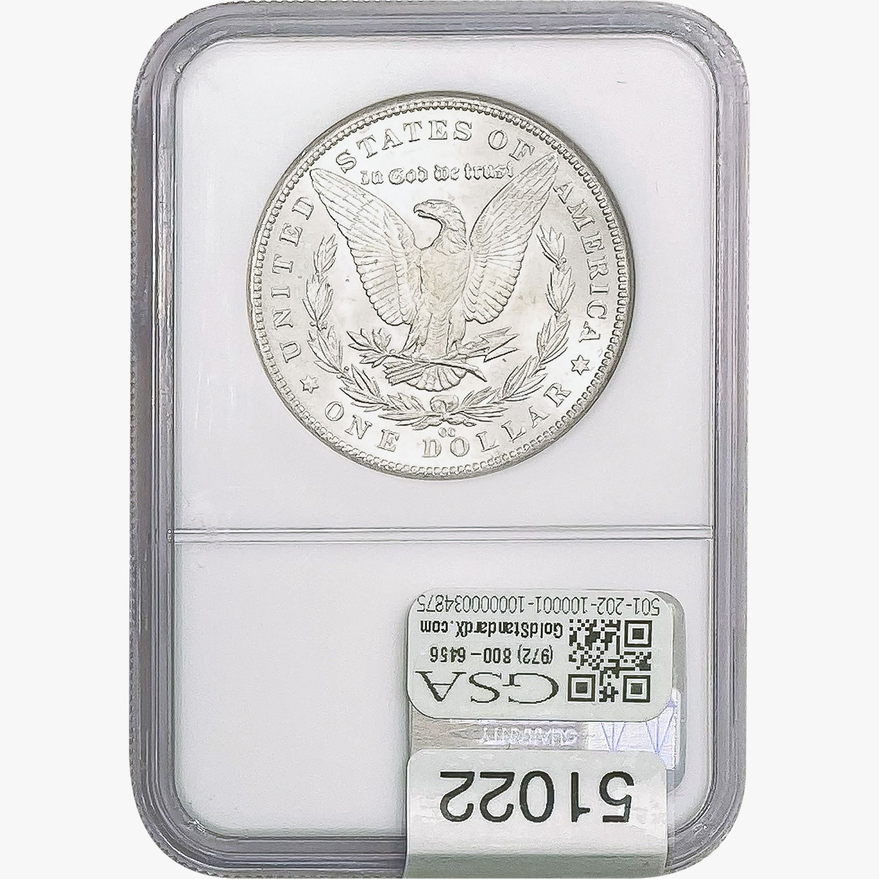COINS AND CURRENCY LISTED IN GSA’S CATALOG AS GRADED AND ENCAPSULATED BY PCGS, NGC, ANACS, ICG, PCGS CURRENCY, PMG, PCGS BANKNOTE GRADING, CMC OR ANY OTHER THIRD-PARTY GRADING SERVICE ARE LIKEWISE SOLD “AS-IS” EXCEPT AS EXPRESSLY SET FORTH HEREIN. ALL THIRD-PARTY GRADING SERVICE GUARANTEES, INCLUDING AUTHENTICITY, ARE THE SOLE RESPONSIBILITY OF THE THIRD-PARTY GRADING SERVICE AND NOT WARRANTIES OR GUARANTEES OF GSA. BIDDERS SHOULD CONTACT THESE THIRD-PARTY GRADING SERVICES DIRECTLY WITH RESPECT TO ANY CLAIMS OR QUESTIONS THEY MAY HAVE CONCERNING THEIR GUARANTEES AND WARRANTIES. BIDDERS ACKNOWLEDGE AND AGREE THAT AUCTIONEER IS NOT BOUND BY OR LIABLE FOR ANY OPINION OR CERTIFICATION BY ANY THIRD-PARTY GRADING SERVICE. REMOVAL OF A PRODUCT FROM ITS PROTECTIVE CASING OR HOLDER OR ALTERATION OF ANY COIN HOLDER WAIVES ALL RIGHTS CONCERNING THE PRODUCT CONTAINED THEREIN.