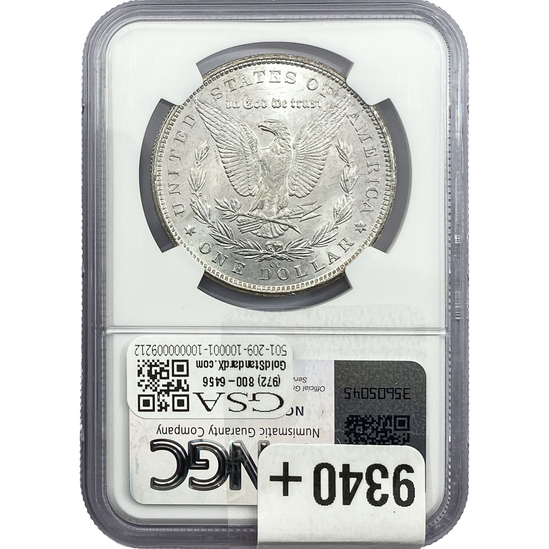 e. Coins sold referencing a third-party grading service are sold “AS IS” without any express or implied warranty, except for a guarantee by GSA that they are genuine. Removal or alteration of the holder, voids all of Bidder’s claims concerning that Product. Certain warranties may be available from the grading services and Bidders are referred to them for further details: Numismatic Guaranty Corporation (NGC), PO Box 4776, Sarasota, FL 34230, www.ngccoin.com/services/writtenguarantee.asp; Professional Coin Grading Services (PCGS), PO Box 9458, Newport Beach, CA 92658, www.pcgs.com/guarantee.html; ANACS, 6555 S. Kenton St., Ste. 303, Englewood, CO 80111; and Independent Coin Grading Co. (ICG), 7901 East Bellview, Ave., Suite 50, Englewood, CO 80111.