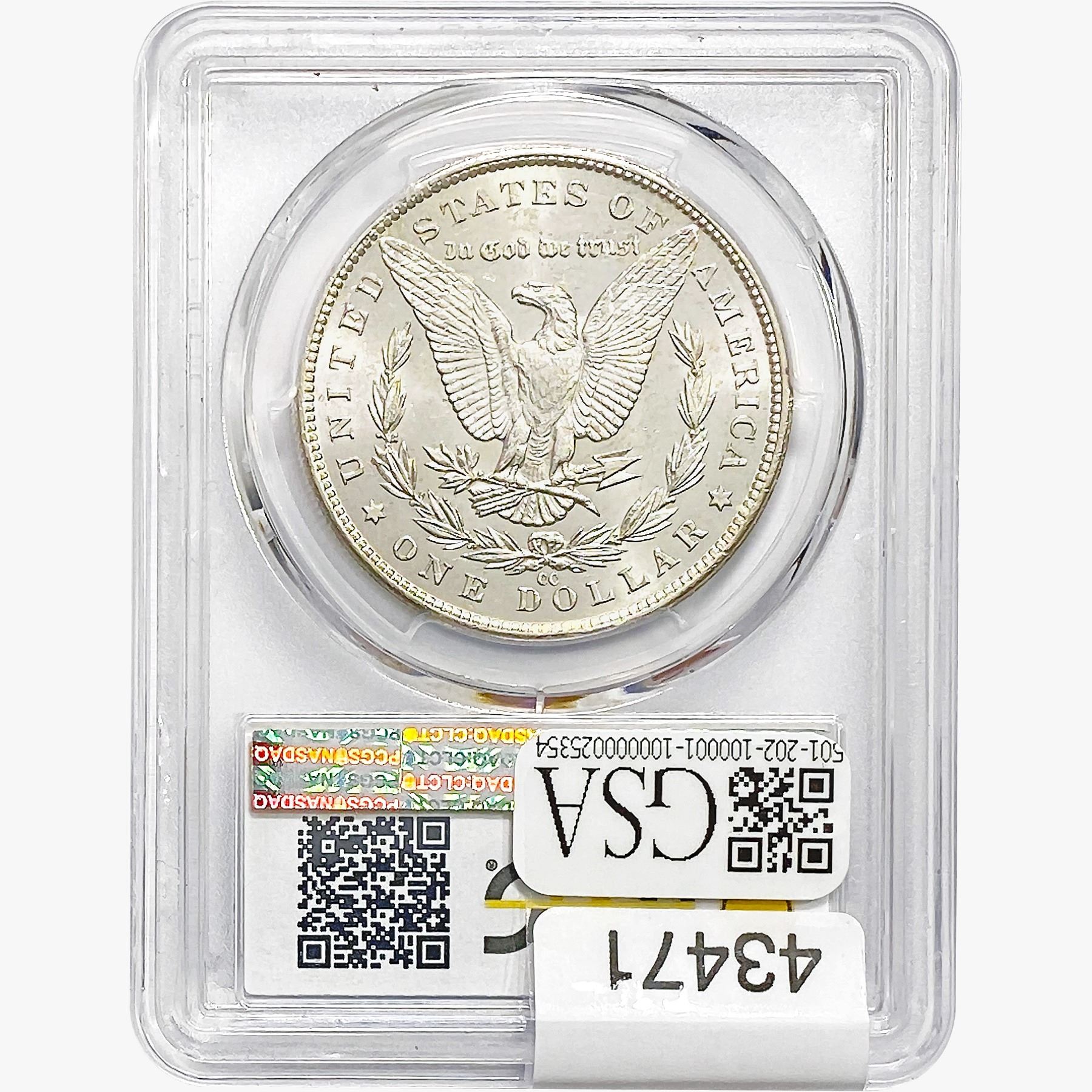 COINS AND CURRENCY LISTED IN GSA’S CATALOG AS GRADED AND ENCAPSULATED BY PCGS, NGC, ANACS, ICG, PCGS CURRENCY, PMG, PCGS BANKNOTE GRADING, CMC OR ANY OTHER THIRD-PARTY GRADING SERVICE ARE LIKEWISE SOLD “AS-IS” EXCEPT AS EXPRESSLY SET FORTH HEREIN. ALL THIRD-PARTY GRADING SERVICE GUARANTEES, INCLUDING AUTHENTICITY, ARE THE SOLE RESPONSIBILITY OF THE THIRD-PARTY GRADING SERVICE AND NOT WARRANTIES OR GUARANTEES OF GSA. BIDDERS SHOULD CONTACT THESE THIRD-PARTY GRADING SERVICES DIRECTLY WITH RESPECT TO ANY CLAIMS OR QUESTIONS THEY MAY HAVE CONCERNING THEIR GUARANTEES AND WARRANTIES. BIDDERS ACKNOWLEDGE AND AGREE THAT AUCTIONEER IS NOT BOUND BY OR LIABLE FOR ANY OPINION OR CERTIFICATION BY ANY THIRD-PARTY GRADING SERVICE. REMOVAL OF A PRODUCT FROM ITS PROTECTIVE CASING OR HOLDER OR ALTERATION OF ANY COIN HOLDER WAIVES ALL RIGHTS CONCERNING THE PRODUCT CONTAINED THEREIN.