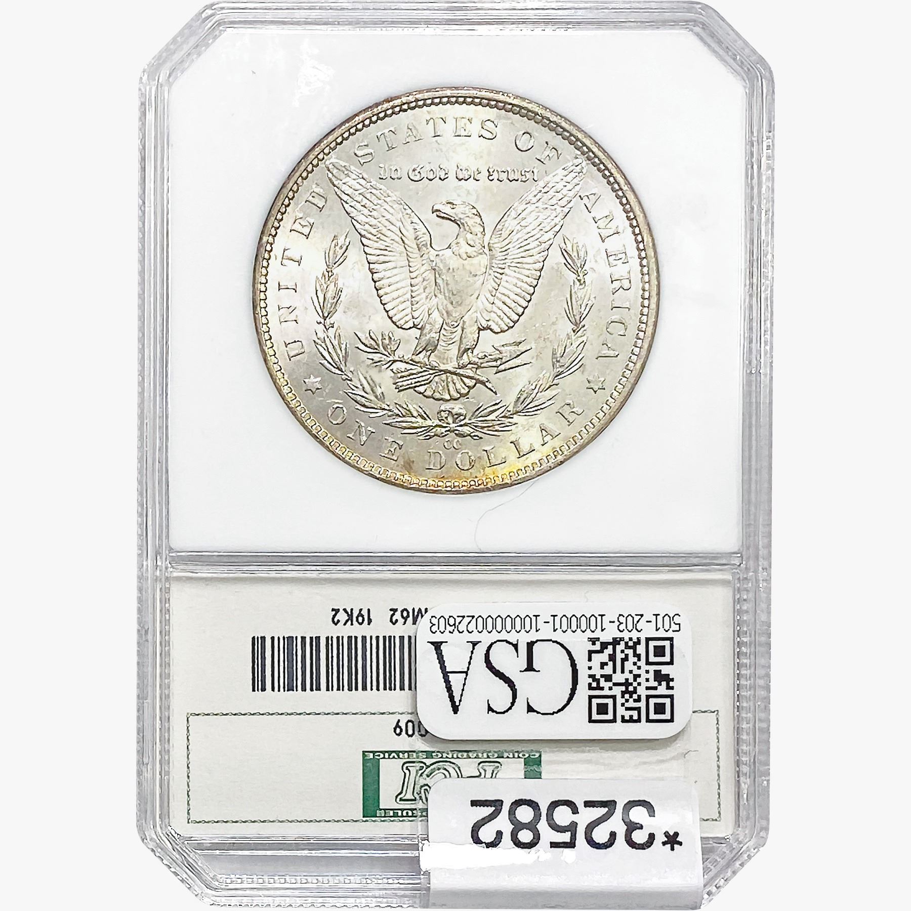 COINS AND CURRENCY LISTED IN GSA’S CATALOG AS GRADED AND ENCAPSULATED BY PCGS, NGC, ANACS, ICG, PCGS CURRENCY, PMG, PCGS BANKNOTE GRADING, CMC OR ANY OTHER THIRD-PARTY GRADING SERVICE ARE LIKEWISE SOLD “AS-IS” EXCEPT AS EXPRESSLY SET FORTH HEREIN. ALL THIRD-PARTY GRADING SERVICE GUARANTEES, INCLUDING AUTHENTICITY, ARE THE SOLE RESPONSIBILITY OF THE THIRD-PARTY GRADING SERVICE AND NOT WARRANTIES OR GUARANTEES OF GSA. BIDDERS SHOULD CONTACT THESE THIRD-PARTY GRADING SERVICES DIRECTLY WITH RESPECT TO ANY CLAIMS OR QUESTIONS THEY MAY HAVE CONCERNING THEIR GUARANTEES AND WARRANTIES. BIDDERS ACKNOWLEDGE AND AGREE THAT AUCTIONEER IS NOT BOUND BY OR LIABLE FOR ANY OPINION OR CERTIFICATION BY ANY THIRD-PARTY GRADING SERVICE. REMOVAL OF A PRODUCT FROM ITS PROTECTIVE CASING OR HOLDER OR ALTERATION OF ANY COIN HOLDER WAIVES ALL RIGHTS CONCERNING THE PRODUCT CONTAINED THEREIN.