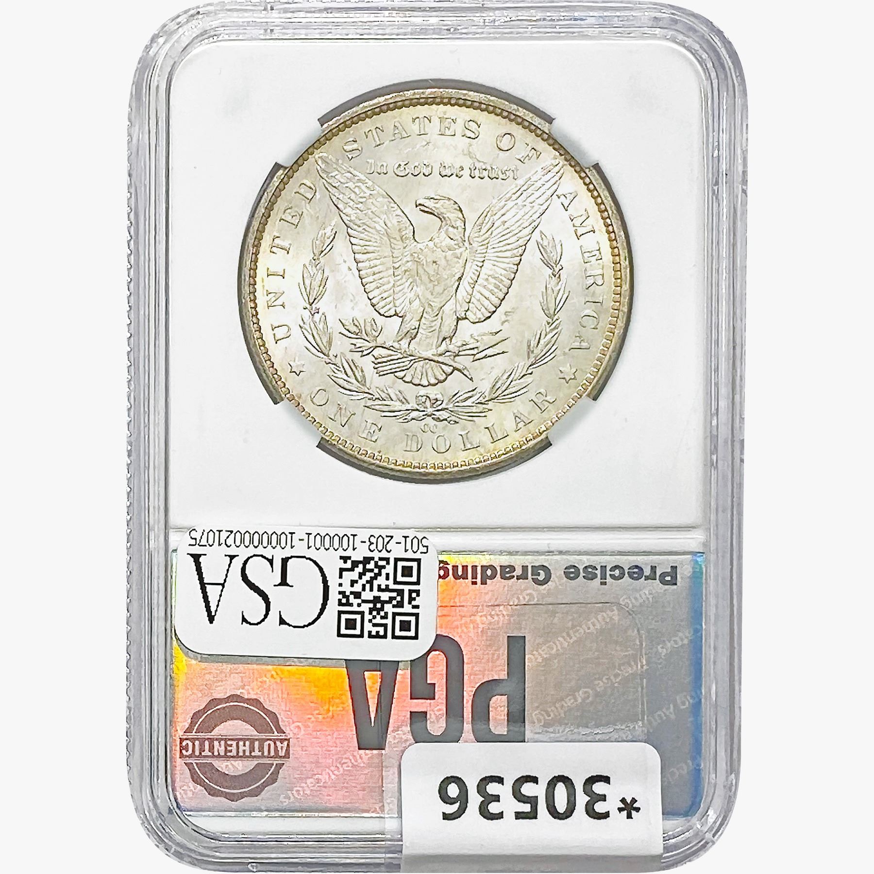 COINS AND CURRENCY LISTED IN GSA’S CATALOG AS GRADED AND ENCAPSULATED BY PCGS, NGC, ANACS, ICG, PCGS CURRENCY, PMG, PCGS BANKNOTE GRADING, CMC OR ANY OTHER THIRD-PARTY GRADING SERVICE ARE LIKEWISE SOLD “AS-IS” EXCEPT AS EXPRESSLY SET FORTH HEREIN. ALL THIRD-PARTY GRADING SERVICE GUARANTEES, INCLUDING AUTHENTICITY, ARE THE SOLE RESPONSIBILITY OF THE THIRD-PARTY GRADING SERVICE AND NOT WARRANTIES OR GUARANTEES OF GSA. BIDDERS SHOULD CONTACT THESE THIRD-PARTY GRADING SERVICES DIRECTLY WITH RESPECT TO ANY CLAIMS OR QUESTIONS THEY MAY HAVE CONCERNING THEIR GUARANTEES AND WARRANTIES. BIDDERS ACKNOWLEDGE AND AGREE THAT AUCTIONEER IS NOT BOUND BY OR LIABLE FOR ANY OPINION OR CERTIFICATION BY ANY THIRD-PARTY GRADING SERVICE. REMOVAL OF A PRODUCT FROM ITS PROTECTIVE CASING OR HOLDER OR ALTERATION OF ANY COIN HOLDER WAIVES ALL RIGHTS CONCERNING THE PRODUCT CONTAINED THEREIN.
