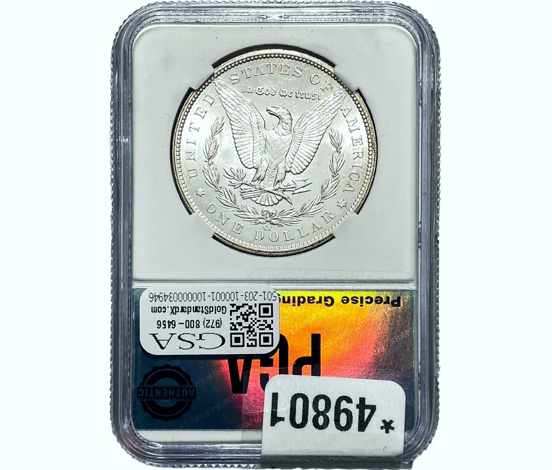 l. All non-certified coins and currency are guaranteed genuine, but are not guaranteed as to grade, since grading is a matter of opinion, an art and not a science, and therefore the description rendered by GSA or any third-party grading service may not agree with the opinion of others (including trained experts), and the same expert may not grade the same item with the same grade at two different times. GSA may, but is not obligated to, express an opinion as to non-certified numismatic items, in GSA’s opinion, or by its employees’ experience and the current interpretation of the American Numismatic Association’s standards as of the date the catalog was prepared. There is no guarantee or warranty expressed or implied that the grading opinions utilized by GSA, if any, will meet the standards of any grading service at any time in the future.