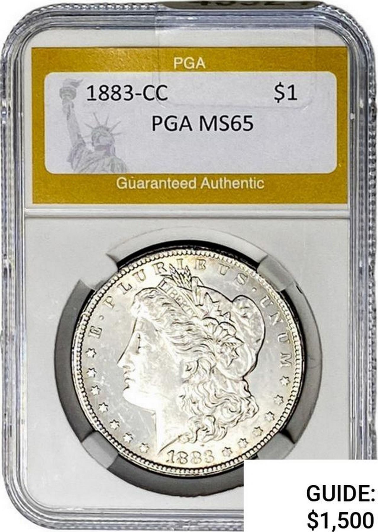 COINS AND CURRENCY LISTED IN GSA’S CATALOG AS GRADED AND ENCAPSULATED BY PCGS, NGC, ANACS, ICG, PCGS CURRENCY, PMG, PCGS BANKNOTE GRADING, CMC OR ANY OTHER THIRD-PARTY GRADING SERVICE ARE LIKEWISE SOLD “AS-IS” EXCEPT AS EXPRESSLY SET FORTH HEREIN. ALL THIRD-PARTY GRADING SERVICE GUARANTEES, INCLUDING AUTHENTICITY, ARE THE SOLE RESPONSIBILITY OF THE THIRD-PARTY GRADING SERVICE AND NOT WARRANTIES OR GUARANTEES OF GSA. BIDDERS SHOULD CONTACT THESE THIRD-PARTY GRADING SERVICES DIRECTLY WITH RESPECT TO ANY CLAIMS OR QUESTIONS THEY MAY HAVE CONCERNING THEIR GUARANTEES AND WARRANTIES. BIDDERS ACKNOWLEDGE AND AGREE THAT AUCTIONEER IS NOT BOUND BY OR LIABLE FOR ANY OPINION OR CERTIFICATION BY ANY THIRD-PARTY GRADING SERVICE. REMOVAL OF A PRODUCT FROM ITS PROTECTIVE CASING OR HOLDER OR ALTERATION OF ANY COIN HOLDER WAIVES ALL RIGHTS CONCERNING THE PRODUCT CONTAINED THEREIN.