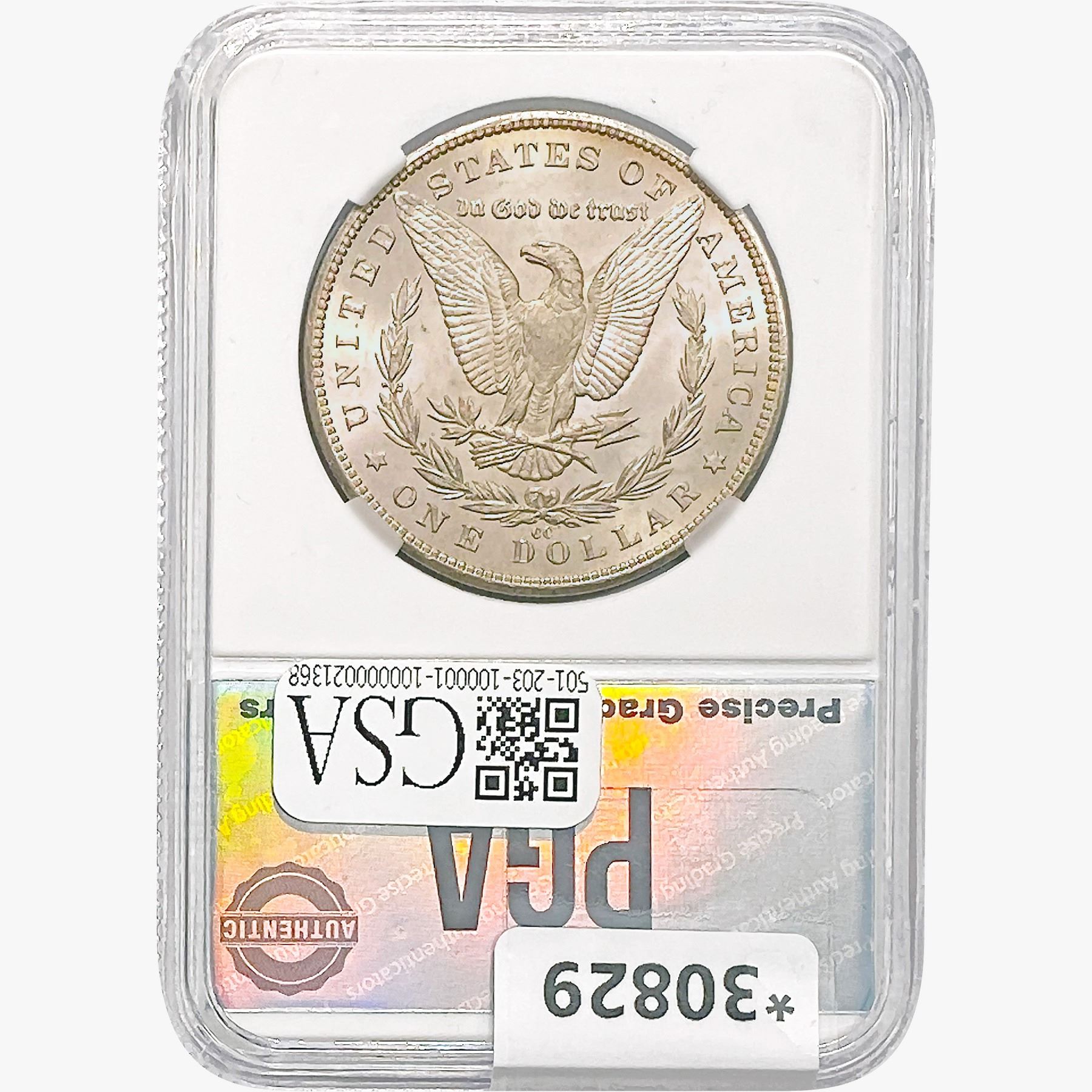 COINS AND CURRENCY LISTED IN GSA’S CATALOG AS GRADED AND ENCAPSULATED BY PCGS, NGC, ANACS, ICG, PCGS CURRENCY, PMG, PCGS BANKNOTE GRADING, CMC OR ANY OTHER THIRD-PARTY GRADING SERVICE ARE LIKEWISE SOLD “AS-IS” EXCEPT AS EXPRESSLY SET FORTH HEREIN. ALL THIRD-PARTY GRADING SERVICE GUARANTEES, INCLUDING AUTHENTICITY, ARE THE SOLE RESPONSIBILITY OF THE THIRD-PARTY GRADING SERVICE AND NOT WARRANTIES OR GUARANTEES OF GSA. BIDDERS SHOULD CONTACT THESE THIRD-PARTY GRADING SERVICES DIRECTLY WITH RESPECT TO ANY CLAIMS OR QUESTIONS THEY MAY HAVE CONCERNING THEIR GUARANTEES AND WARRANTIES. BIDDERS ACKNOWLEDGE AND AGREE THAT AUCTIONEER IS NOT BOUND BY OR LIABLE FOR ANY OPINION OR CERTIFICATION BY ANY THIRD-PARTY GRADING SERVICE. REMOVAL OF A PRODUCT FROM ITS PROTECTIVE CASING OR HOLDER OR ALTERATION OF ANY COIN HOLDER WAIVES ALL RIGHTS CONCERNING THE PRODUCT CONTAINED THEREIN.