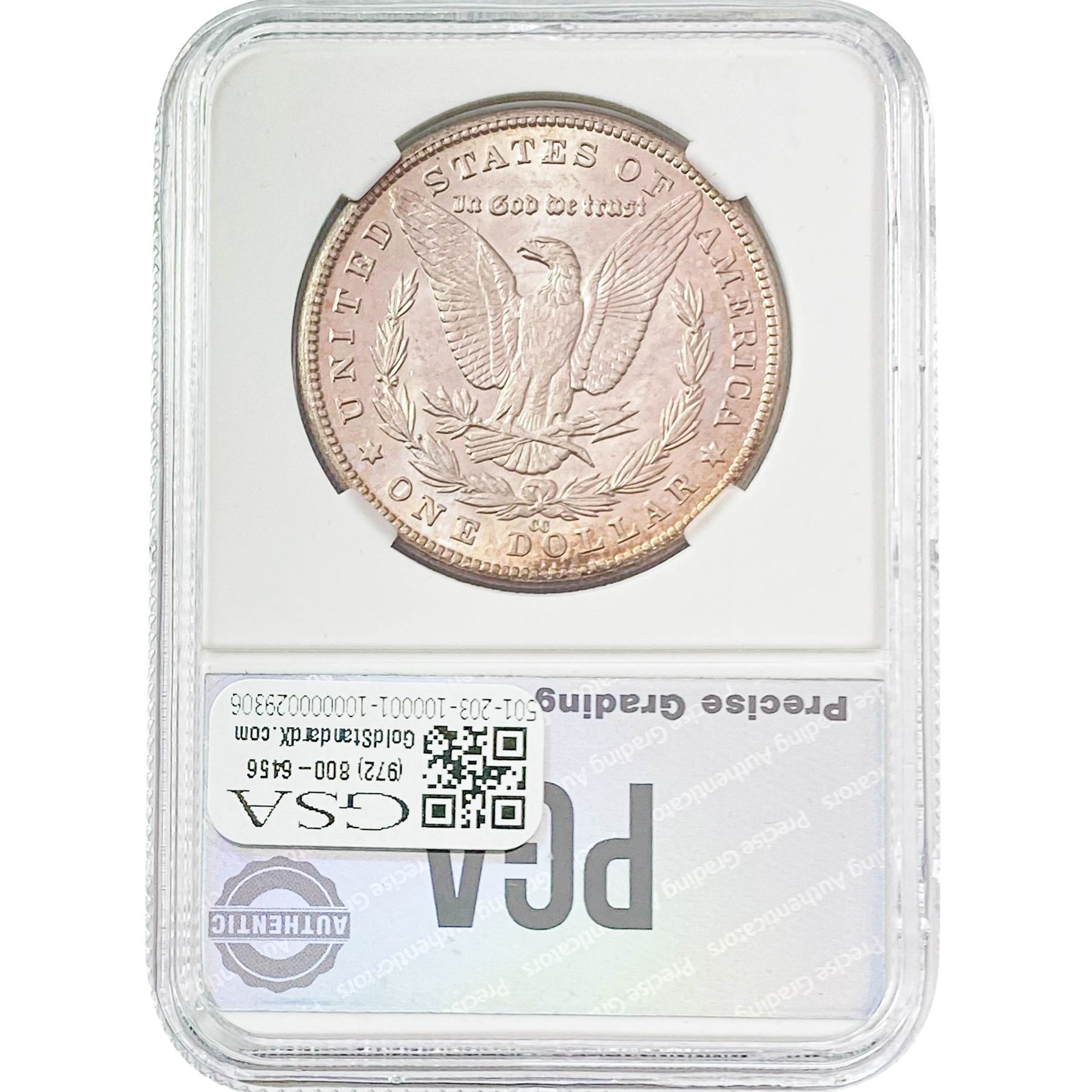 COINS AND CURRENCY LISTED IN GSA’S CATALOG AS GRADED AND ENCAPSULATED BY PCGS, NGC, ANACS, ICG, PCGS CURRENCY, PMG, PCGS BANKNOTE GRADING, CMC OR ANY OTHER THIRD-PARTY GRADING SERVICE ARE LIKEWISE SOLD “AS-IS” EXCEPT AS EXPRESSLY SET FORTH HEREIN. ALL THIRD-PARTY GRADING SERVICE GUARANTEES, INCLUDING AUTHENTICITY, ARE THE SOLE RESPONSIBILITY OF THE THIRD-PARTY GRADING SERVICE AND NOT WARRANTIES OR GUARANTEES OF GSA. BIDDERS SHOULD CONTACT THESE THIRD-PARTY GRADING SERVICES DIRECTLY WITH RESPECT TO ANY CLAIMS OR QUESTIONS THEY MAY HAVE CONCERNING THEIR GUARANTEES AND WARRANTIES. BIDDERS ACKNOWLEDGE AND AGREE THAT AUCTIONEER IS NOT BOUND BY OR LIABLE FOR ANY OPINION OR CERTIFICATION BY ANY THIRD-PARTY GRADING SERVICE. REMOVAL OF A PRODUCT FROM ITS PROTECTIVE CASING OR HOLDER OR ALTERATION OF ANY COIN HOLDER WAIVES ALL RIGHTS CONCERNING THE PRODUCT CONTAINED THEREIN.