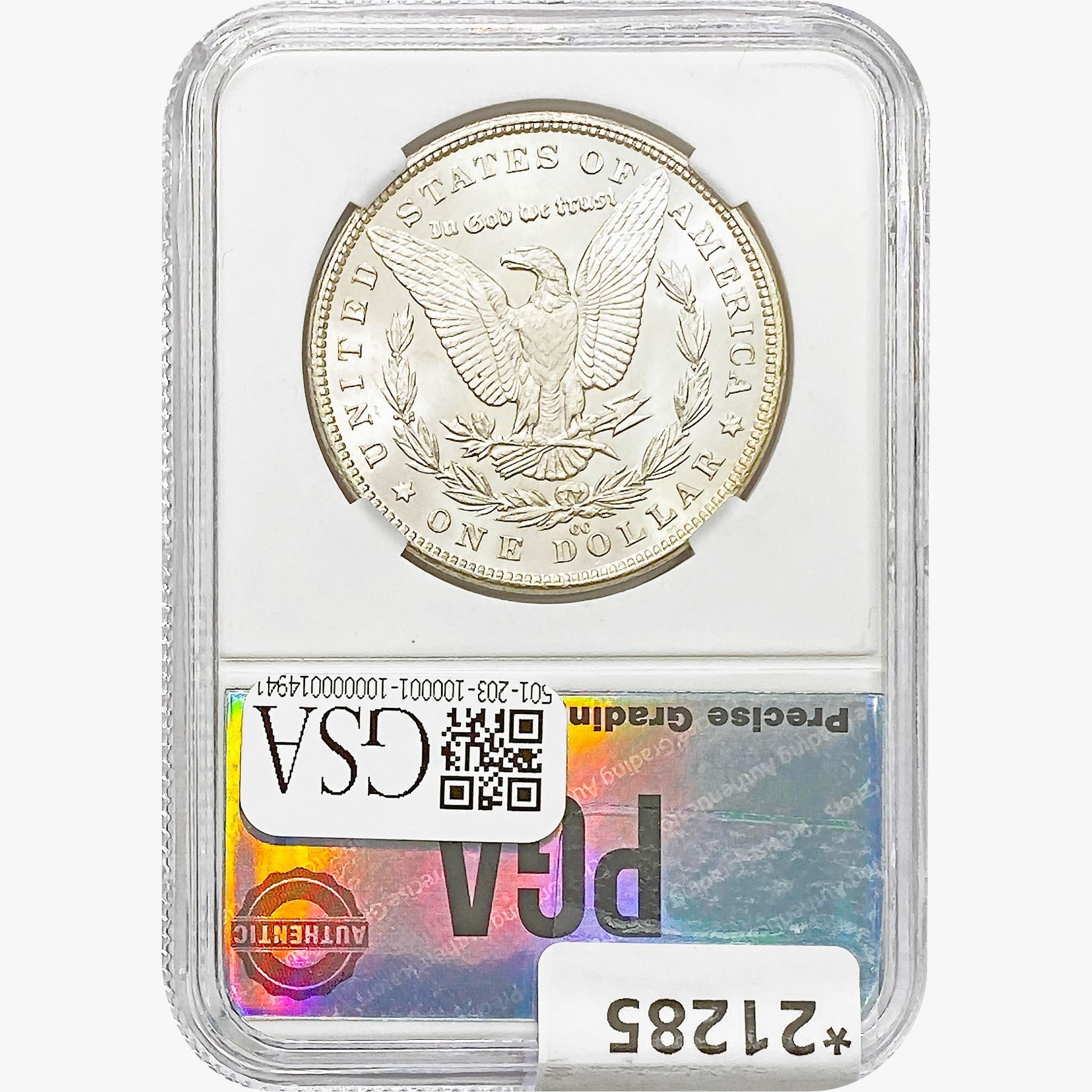 COINS AND CURRENCY LISTED IN GSA’S CATALOG AS GRADED AND ENCAPSULATED BY PCGS, NGC, ANACS, ICG, PCGS CURRENCY, PMG, PCGS BANKNOTE GRADING, CMC OR ANY OTHER THIRD-PARTY GRADING SERVICE ARE LIKEWISE SOLD “AS-IS” EXCEPT AS EXPRESSLY SET FORTH HEREIN. ALL THIRD-PARTY GRADING SERVICE GUARANTEES, INCLUDING AUTHENTICITY, ARE THE SOLE RESPONSIBILITY OF THE THIRD-PARTY GRADING SERVICE AND NOT WARRANTIES OR GUARANTEES OF GSA. BIDDERS SHOULD CONTACT THESE THIRD-PARTY GRADING SERVICES DIRECTLY WITH RESPECT TO ANY CLAIMS OR QUESTIONS THEY MAY HAVE CONCERNING THEIR GUARANTEES AND WARRANTIES. BIDDERS ACKNOWLEDGE AND AGREE THAT AUCTIONEER IS NOT BOUND BY OR LIABLE FOR ANY OPINION OR CERTIFICATION BY ANY THIRD-PARTY GRADING SERVICE. REMOVAL OF A PRODUCT FROM ITS PROTECTIVE CASING OR HOLDER OR ALTERATION OF ANY COIN HOLDER WAIVES ALL RIGHTS CONCERNING THE PRODUCT CONTAINED THEREIN.