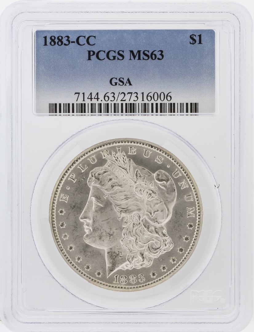 One 1883-CC PCGS MS63 Morgan Silver Dollar. PCGS Certified.