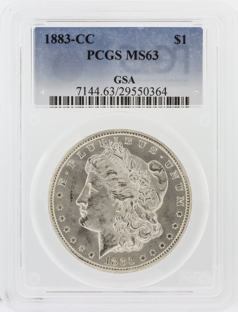 One 1883-CC PCGS MS63 Morgan Silver Dollar. PCGS Certified.